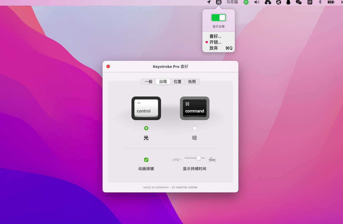 搜集到的一款 Mac 平台上用来显示键盘操作按键的工具,在直播、录屏教学等情景中使用得多,方便别人看到你的键盘操作。