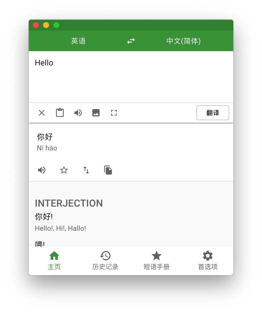 Translatium 是搜集到的一款适合国人使用的mac翻译工具,它可以即时翻译90多种语言。支持自动识别语言、文字转语音、照片识别翻译、同义词,例句等功能。