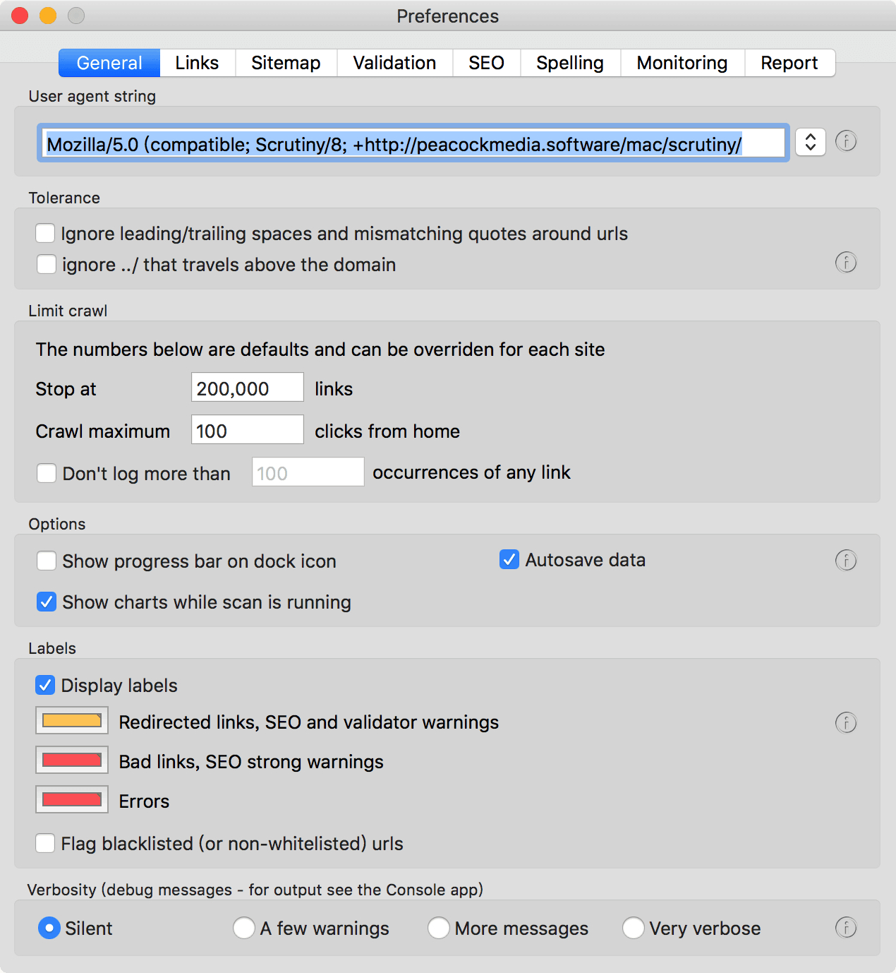 搜集到的Scrutiny 10.3.11Mac破解版用于网页的死链接检查,Scrutiny Mac可以不仅仅使用这些而已,它还可以为您的网站生成站点地图,可以为您的网站分享HTML验证,已经必要的网站标题和SEO优化,元关键字,元描述和标题检查等等。