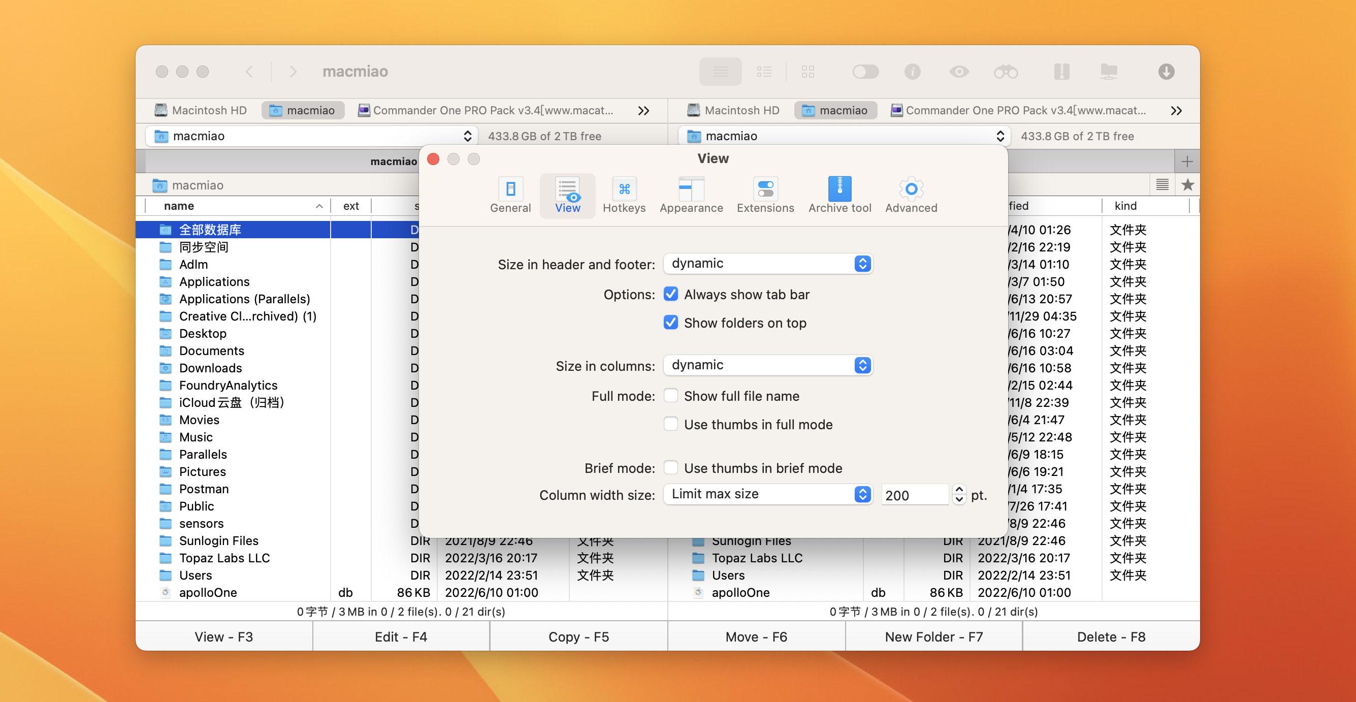Commander One PRO Pack破解内置FTP客户端,可以处理压缩文档,并允许您在Mac上安装MTP设备。除了基本的OS X文件管理器功能,Commander One PRO Mac版还对您的工作流程进行了许多方便的优化,比如创建,删除,打开,移动和重命名文件和文件夹,是非常实用的一款文件管理软件。