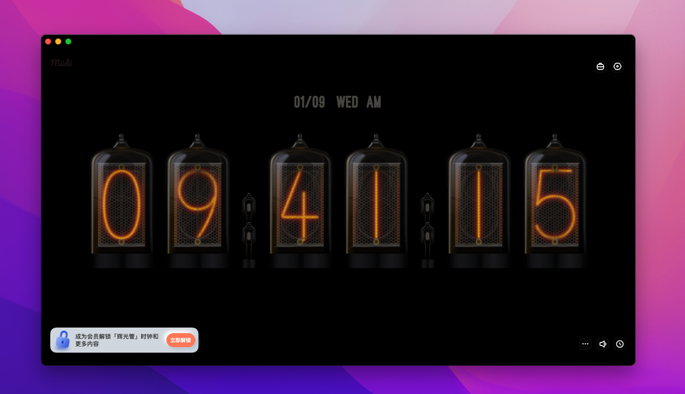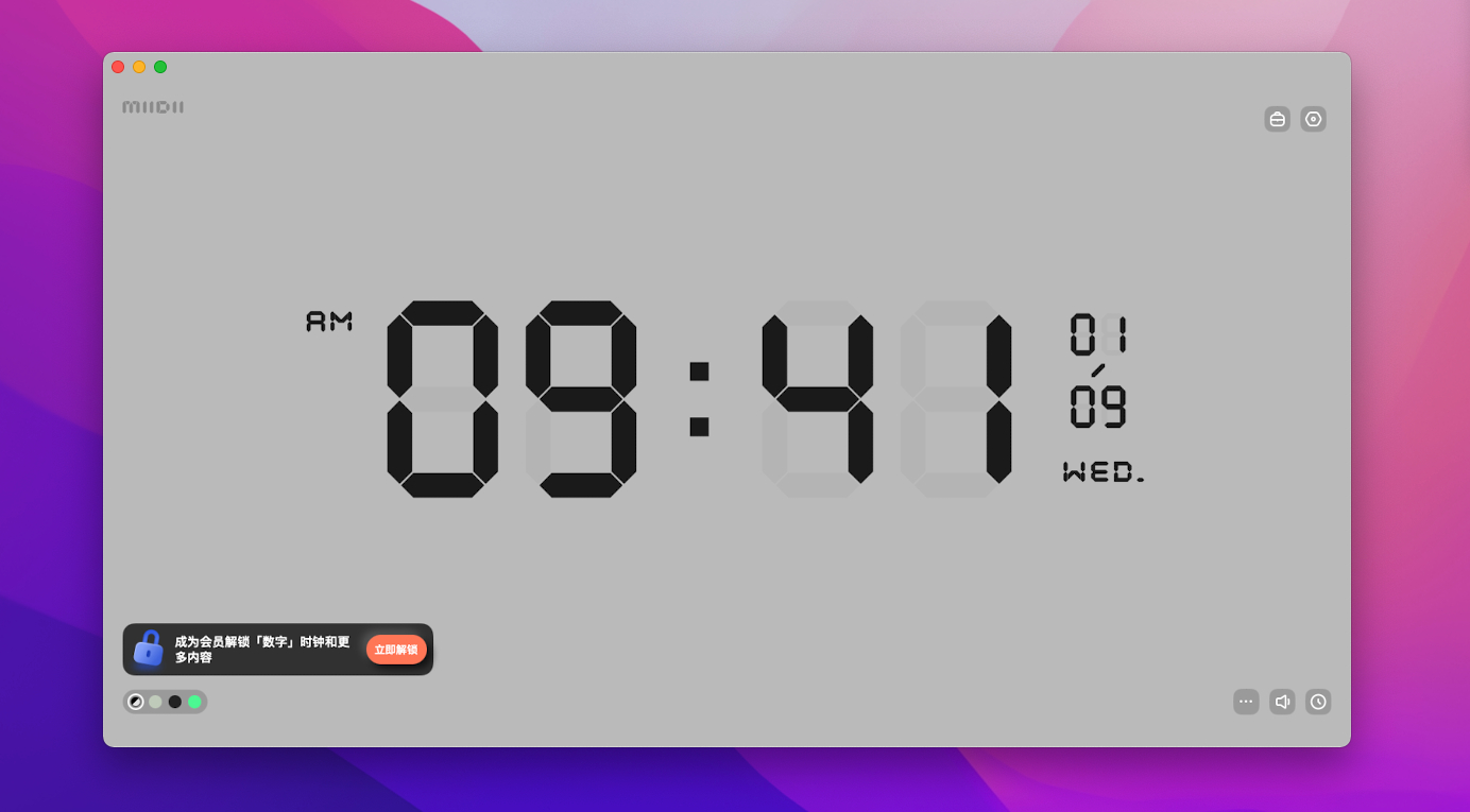 谜底时钟是搜集到的一款精美的数字时钟应用,拥有 16 款高颜值的数字时钟,以及对应的秒针音效,支持 macOS、iPad、iPhone 跨平台,拥有相同的使用体验。