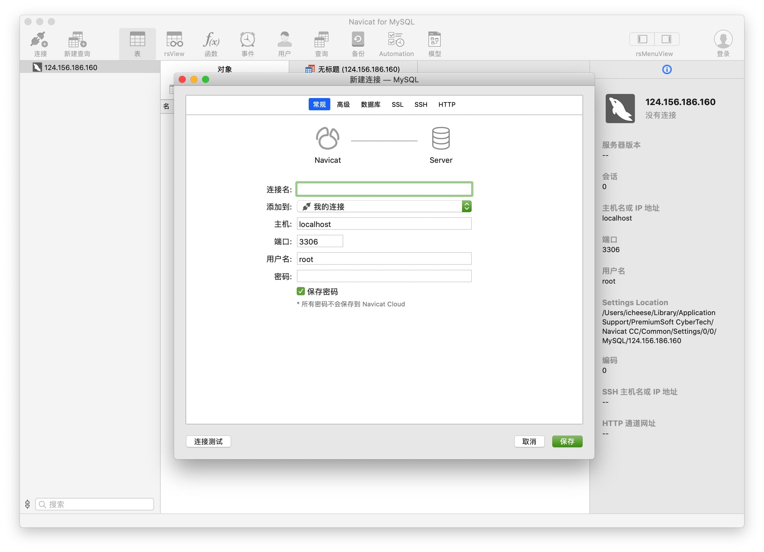 Navicat for MySQL 可连接到本机或远程 MySQL 或 MariaDB 服务器。它可以用于 MySQL 数据库服务器版本 3.21 或以上和 MariaDB 5.1 或以上,并支持 Amazon RDS、Amazon Aurora、Oracle Cloud 和 Google Cloud 等云数据库。它与 Drizzle、OurDelta 和 Percona Server 兼容,并支持大部份最新的功能,包括表、视图、函数或过程、事件等。