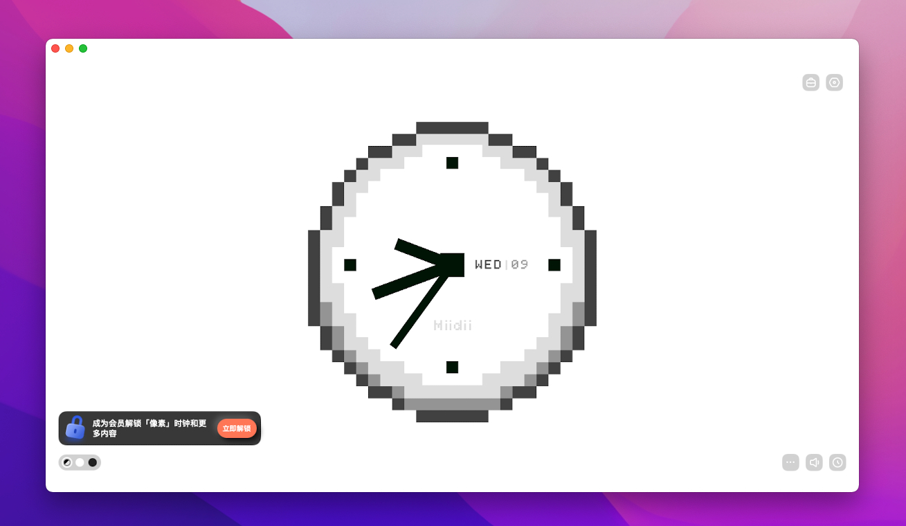 谜底时钟是搜集到的一款精美的数字时钟应用,拥有 16 款高颜值的数字时钟,以及对应的秒针音效,支持 macOS、iPad、iPhone 跨平台,拥有相同的使用体验。