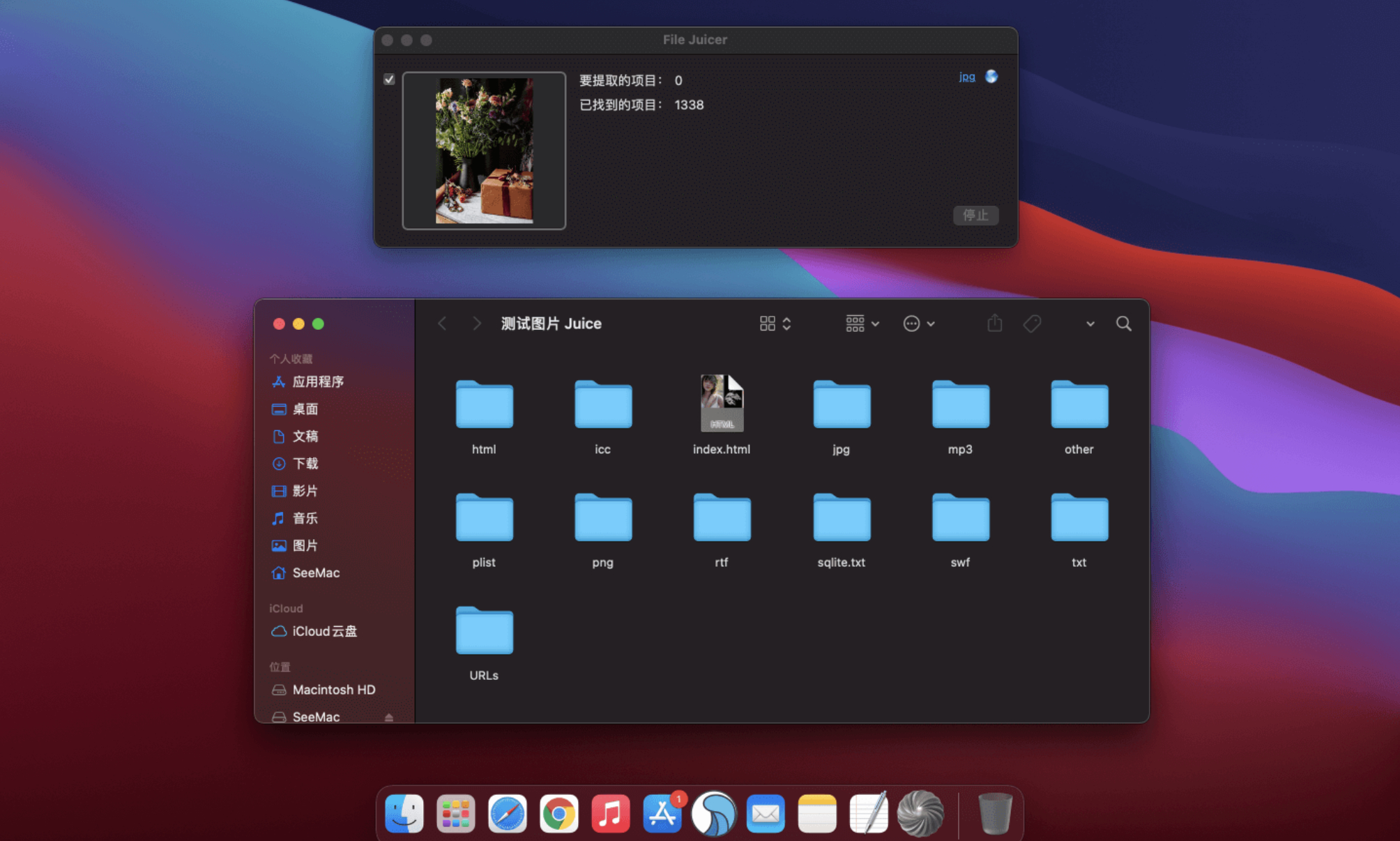 File Juicer 是一款适用于Mac的文件提取工具,只需要将文件拖放到 File Juicer 的拖放区,就可以提取文件,可提取word、ppt等档案中的图片文件,也可提取PDF文件中的图片文档、对于文件夹,你直接拖入亦可分离出你想要的文件,并可热行一些将PDF文件转换成.doc文件的操作。