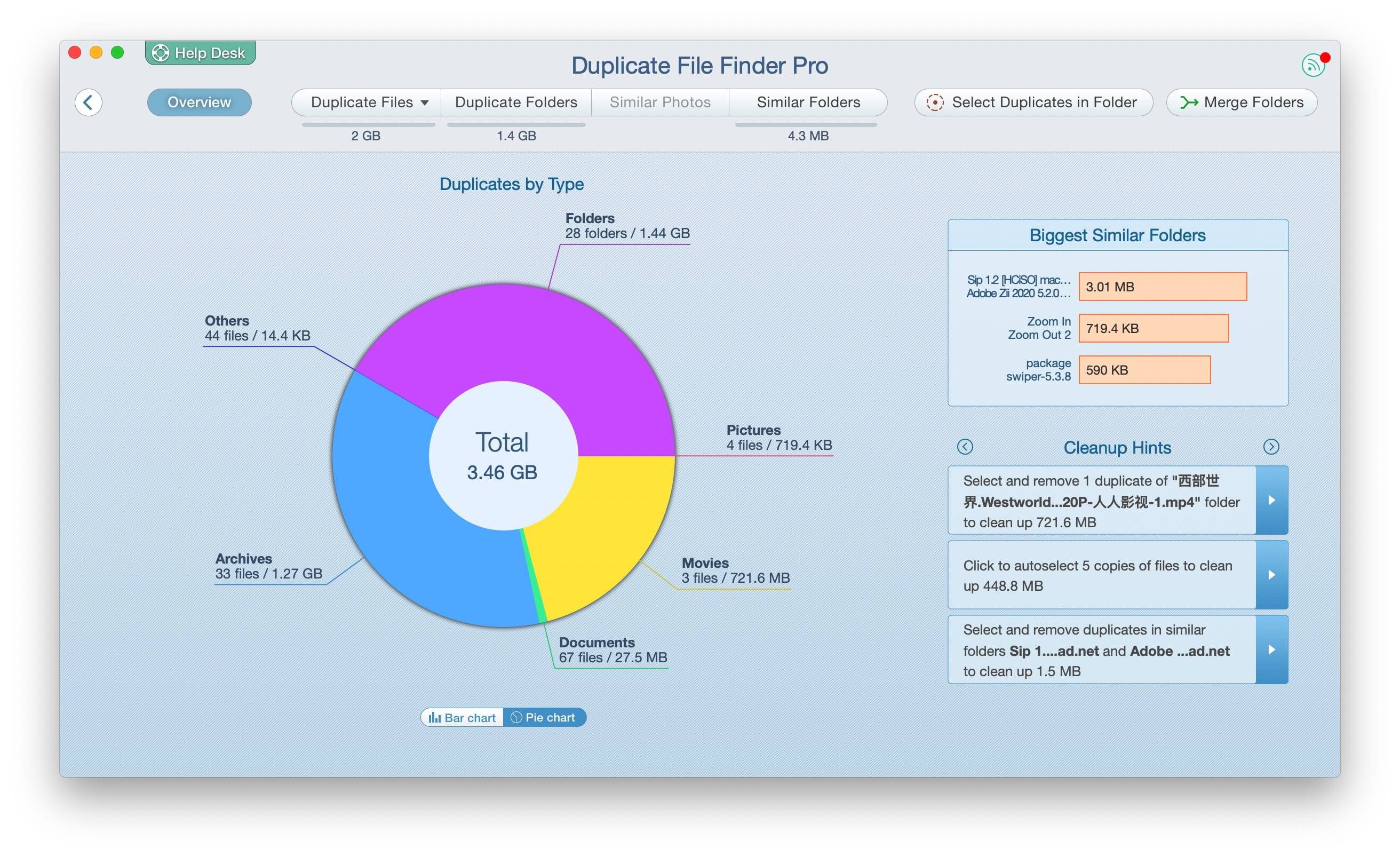 搜集到的Duplicate File Finder Pro 是一款专业的重复文件查找及清理工具,Macbook现在都是固态盘,但是大容量的价格贵的离谱,因此很多网友会选择买小一点容量的,但是会发现硬盘很快就没有空间了,需要定期清理硬盘垃圾文件和清理硬盘重复文件,如果你是在寻找这样一款工具的话,这款Duplicate File Finder Pro可以帮到你,它可以快速查找和清理无用多余的重复文件并且删除它们。