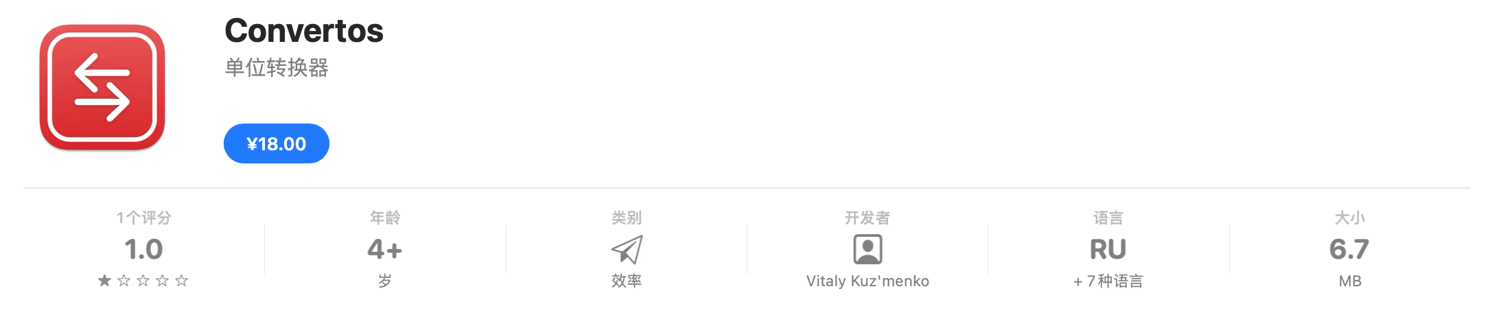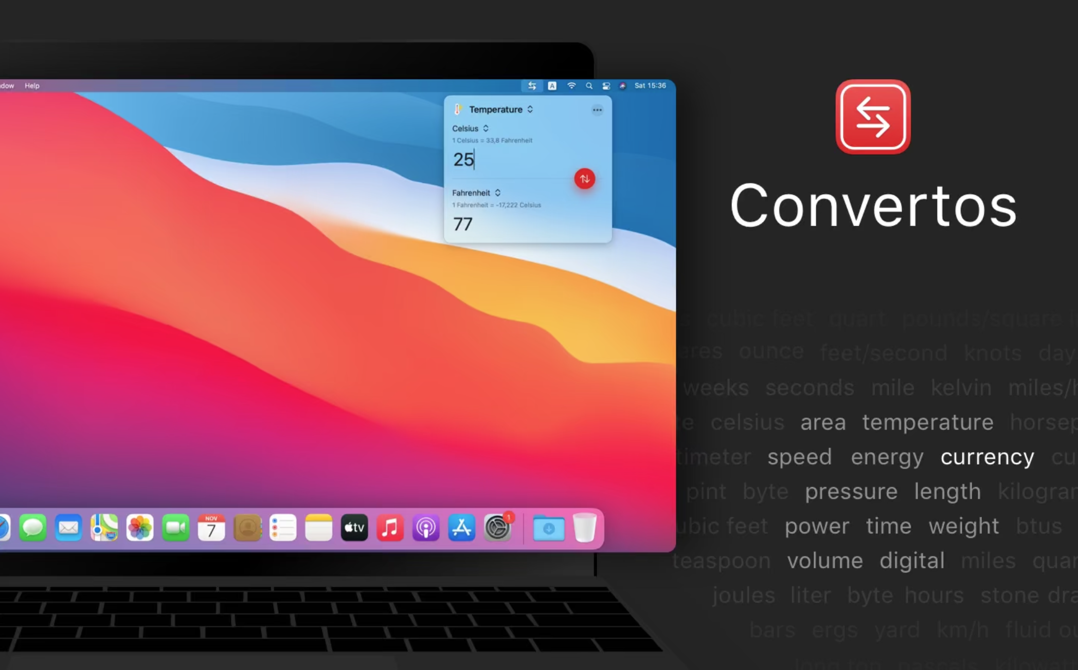 Convertos Mac版能够让你在通知中心里进行单位转换,Convertos支持面积、速度、重量、长度、温度、时间等,可以让你很快速地进行单位转。它支持多种语言,两种模式,是一款非常不错的小部件。
