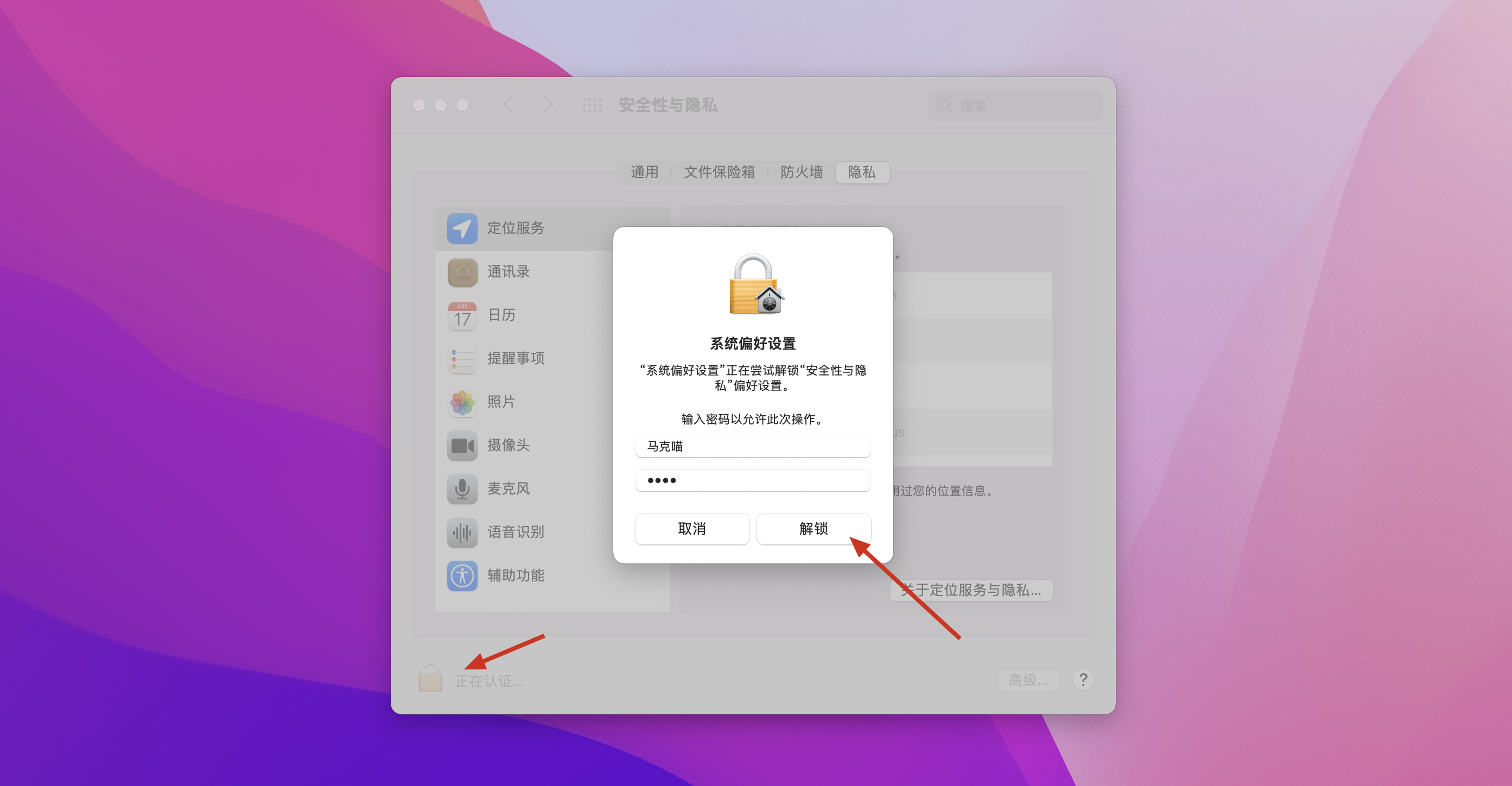 点击锁样式图标,输入密码,解锁,如图: