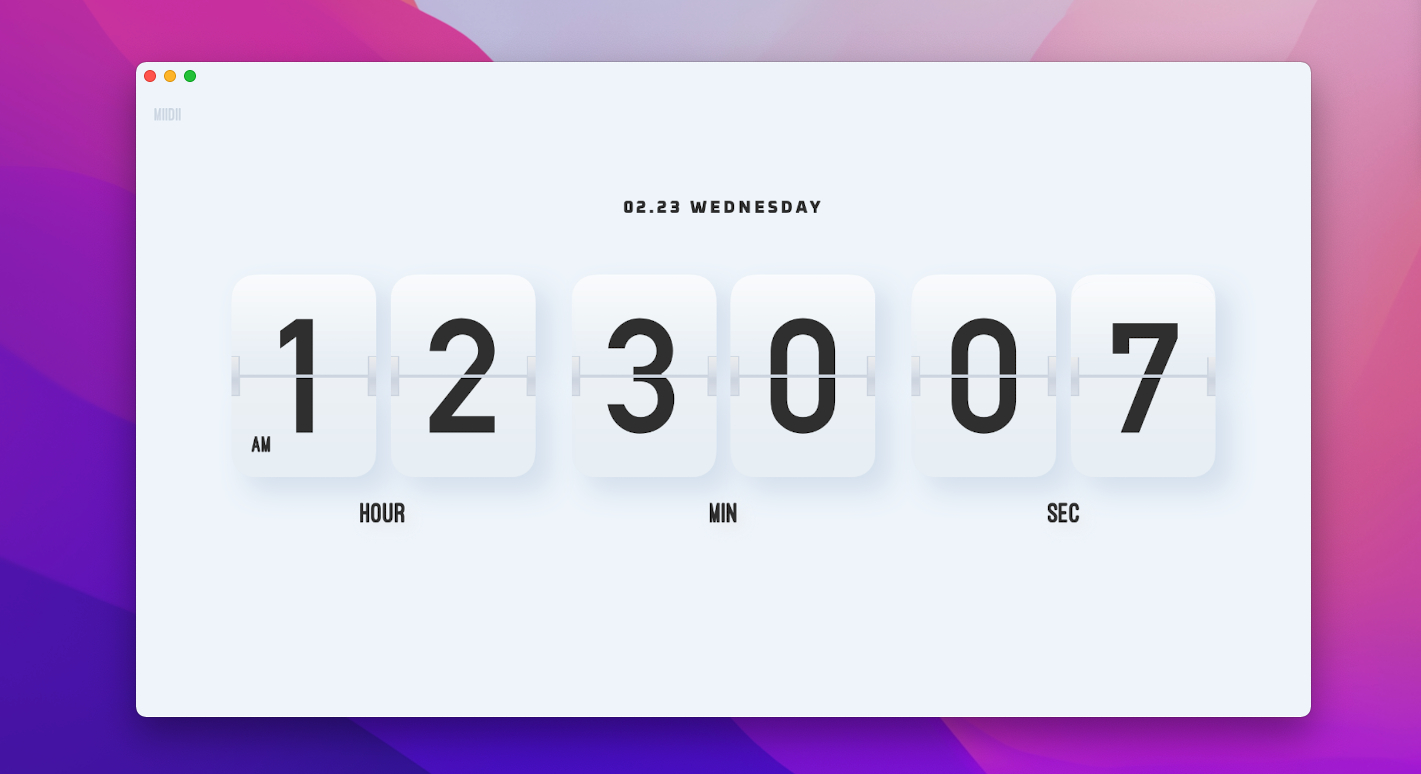 谜底时钟是搜集到的一款精美的数字时钟应用,拥有 16 款高颜值的数字时钟,以及对应的秒针音效,支持 macOS、iPad、iPhone 跨平台,拥有相同的使用体验。