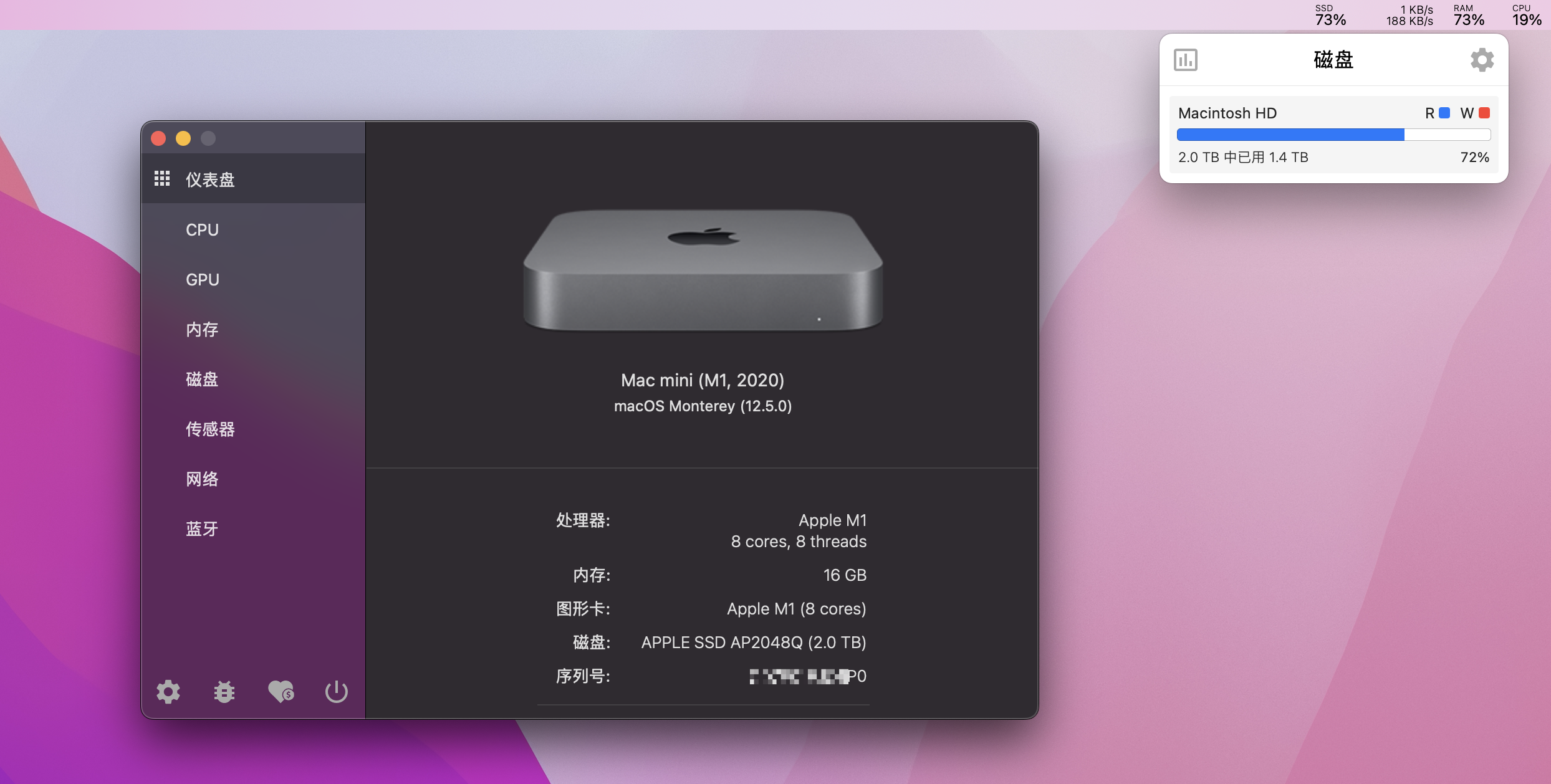 Stats for mac是一款运行在MacOS上的停靠在菜单栏的系统监视工具。Stats可以帮你更好的监测系统的CPU情况,内存和磁盘使用情况,电池电量等内容,让你可以随时了解mac的具体情况。