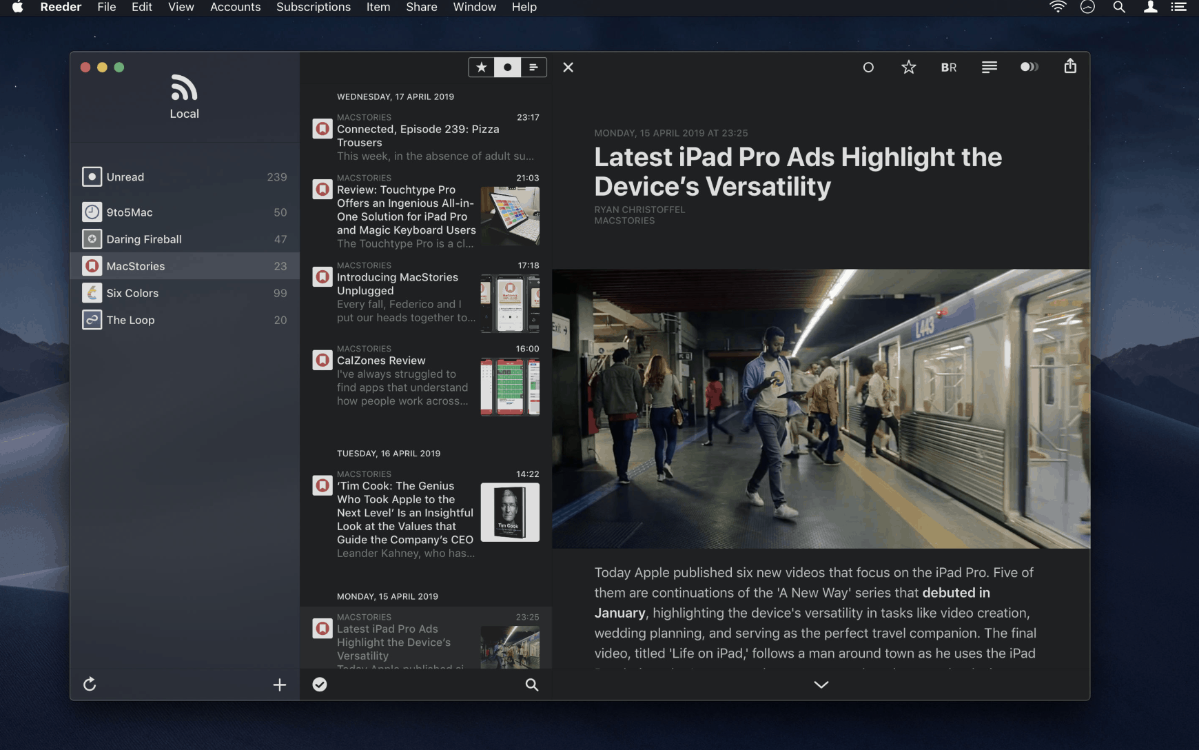 Reeder 5是搜集到的一款不能错过的RSS阅读器。这是一款适用于Mac的新闻阅读器,支持各种同步服务。