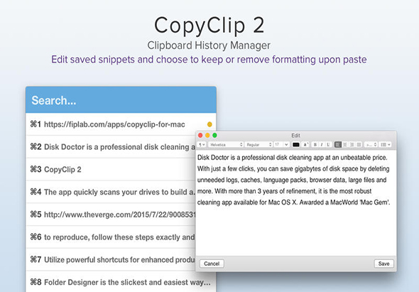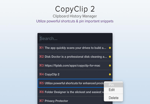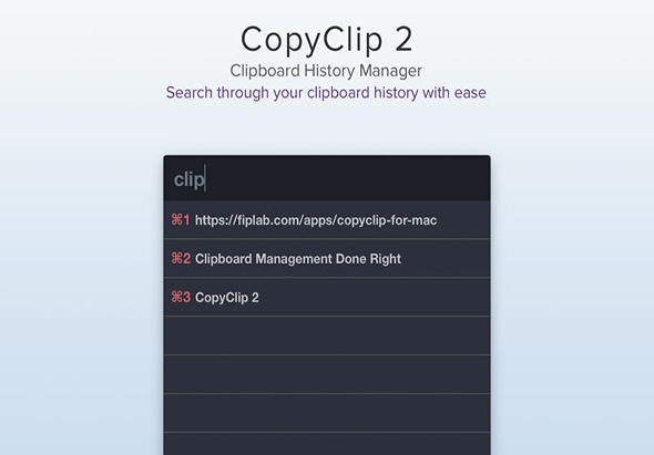 CopyClip mac是最简单和最有效的为你的Mac剪贴板管理器。小心翼翼地从你的菜单栏,运行这个应用程序商店所有你复制或削减在过去,让你快速找到你一直在找的片段文本。