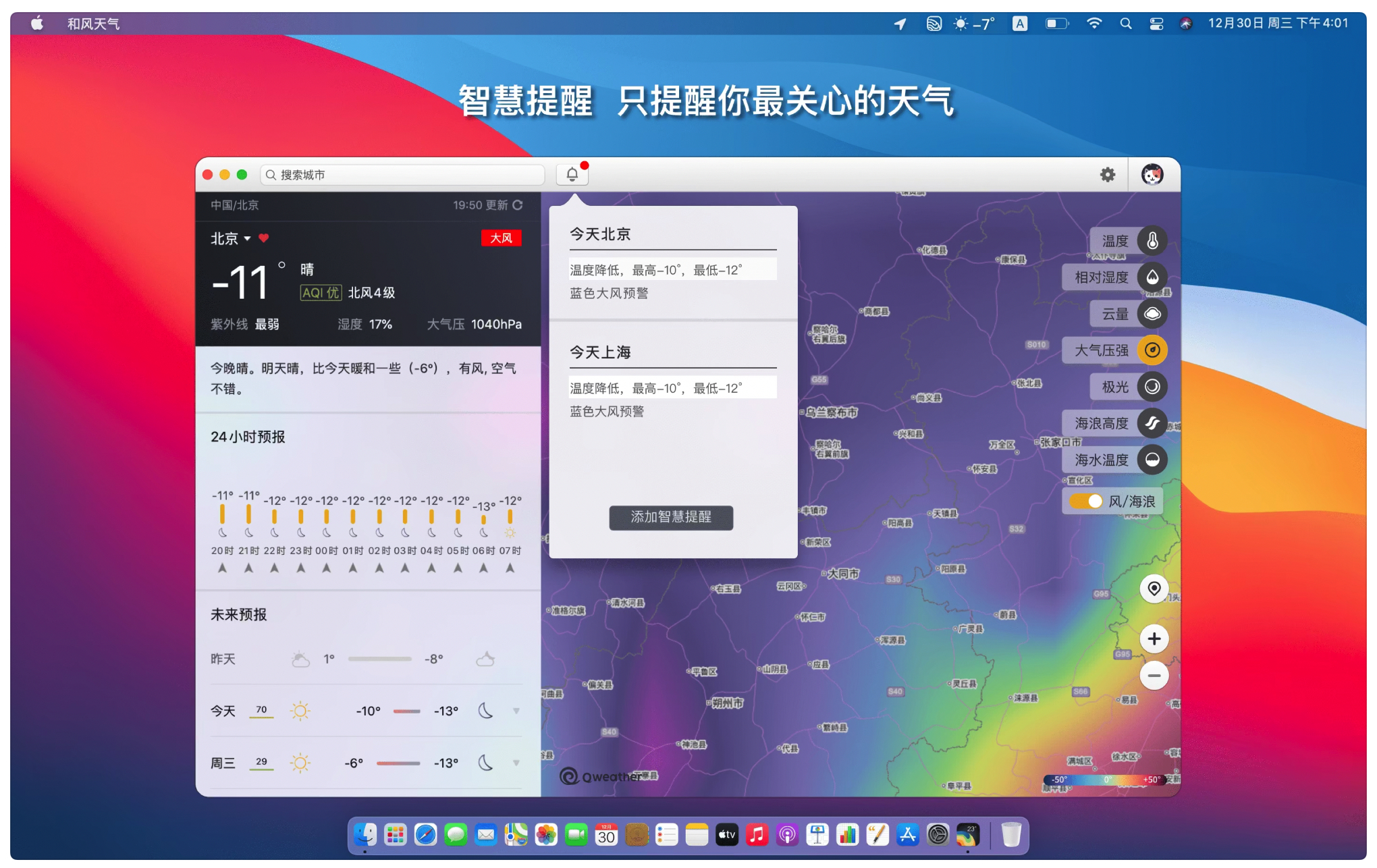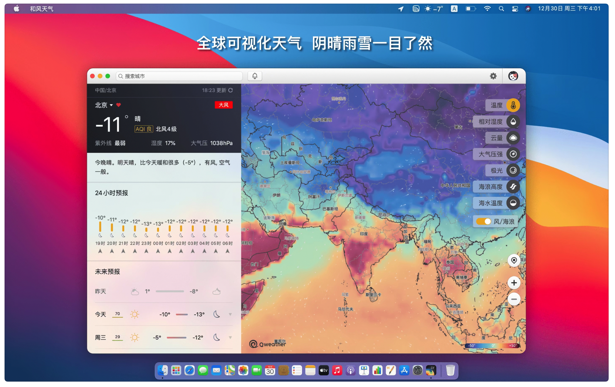 搜集到的和风天气 (QWeather) 是一款全球可视化、高精度、智慧型 macOS 天气应用。全球可视化天气:温度、降水、空气质量以可视化形式展现给你,直观的感受全球各类天气状况趋势。