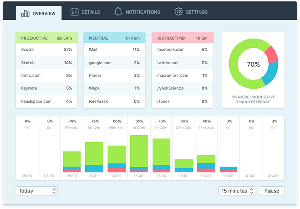 Qbserve 知道生产力费率为数以千计的网站和应用程序,具有独特的能力来区分在 Skype、 可宽延时间和电报,YouTube 视频聊天和 subreddits。您还可以设置警报,通知你,当你达到你的目标或花太多时间使人分心。