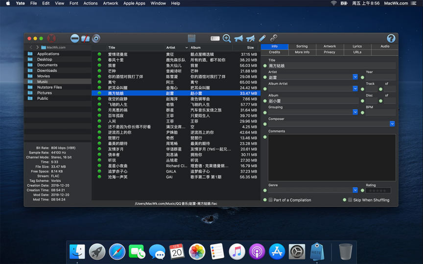 Yate是一款Mac平台的音乐标签及管理工具,能够帮助我们轻松编辑音乐文件的元标签数据,支持MP3, M4A, MP4,AIFF, FLAC, WAV以及 DSF格式的音频文件,我们可以利用这款软件轻松管理我们的音乐文件。
