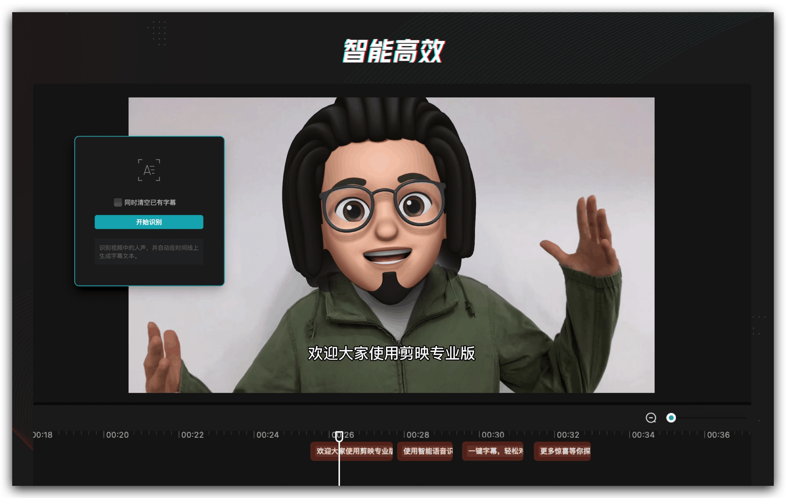 - 「语音识别」智能识别字幕与歌词,提升配字效率;