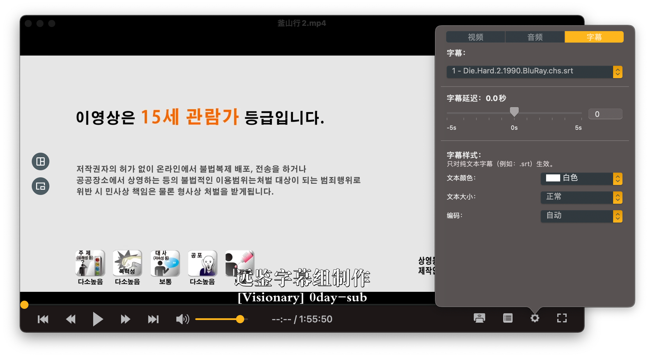 OmniPlayer 的字幕面板可以调整字幕的颜色、大小、编码,还能设置字幕延时。
