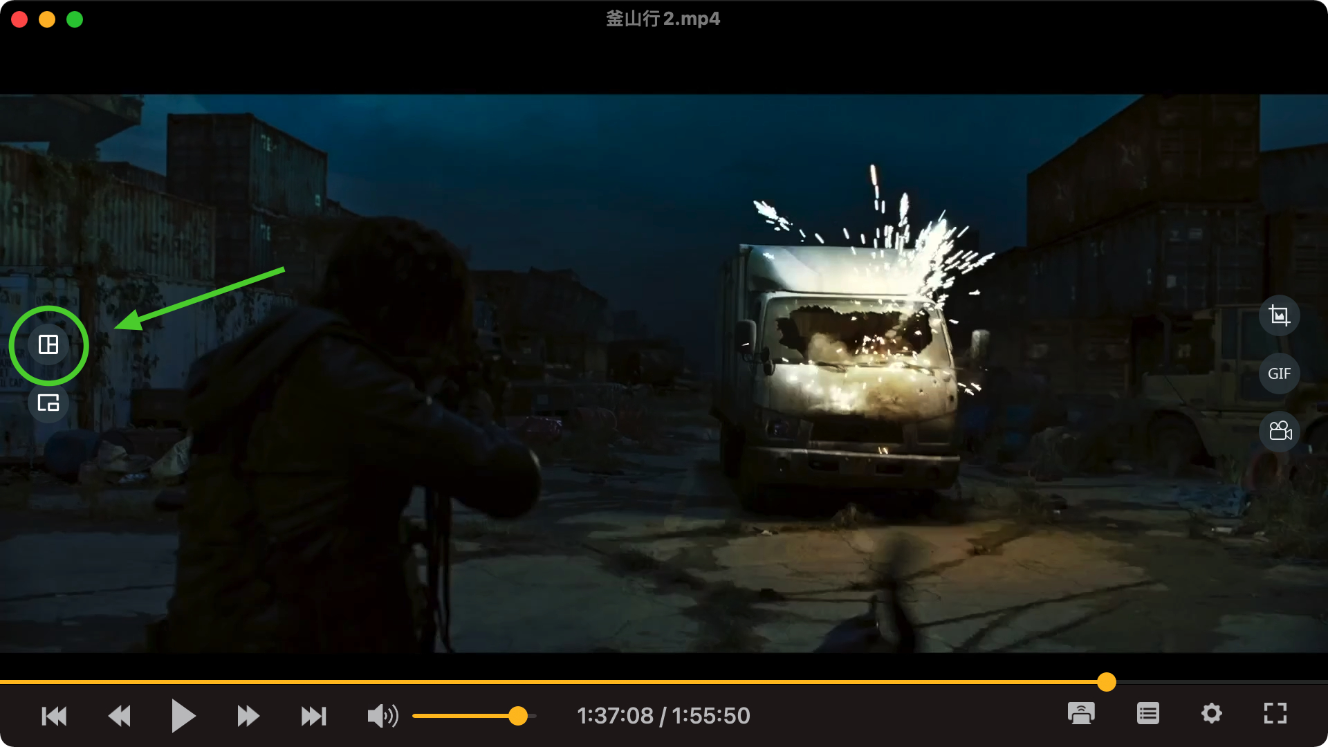 播放界面的右中侧,则是截屏、录制 GIF(最长 60 秒)、录屏按钮,非常方便。