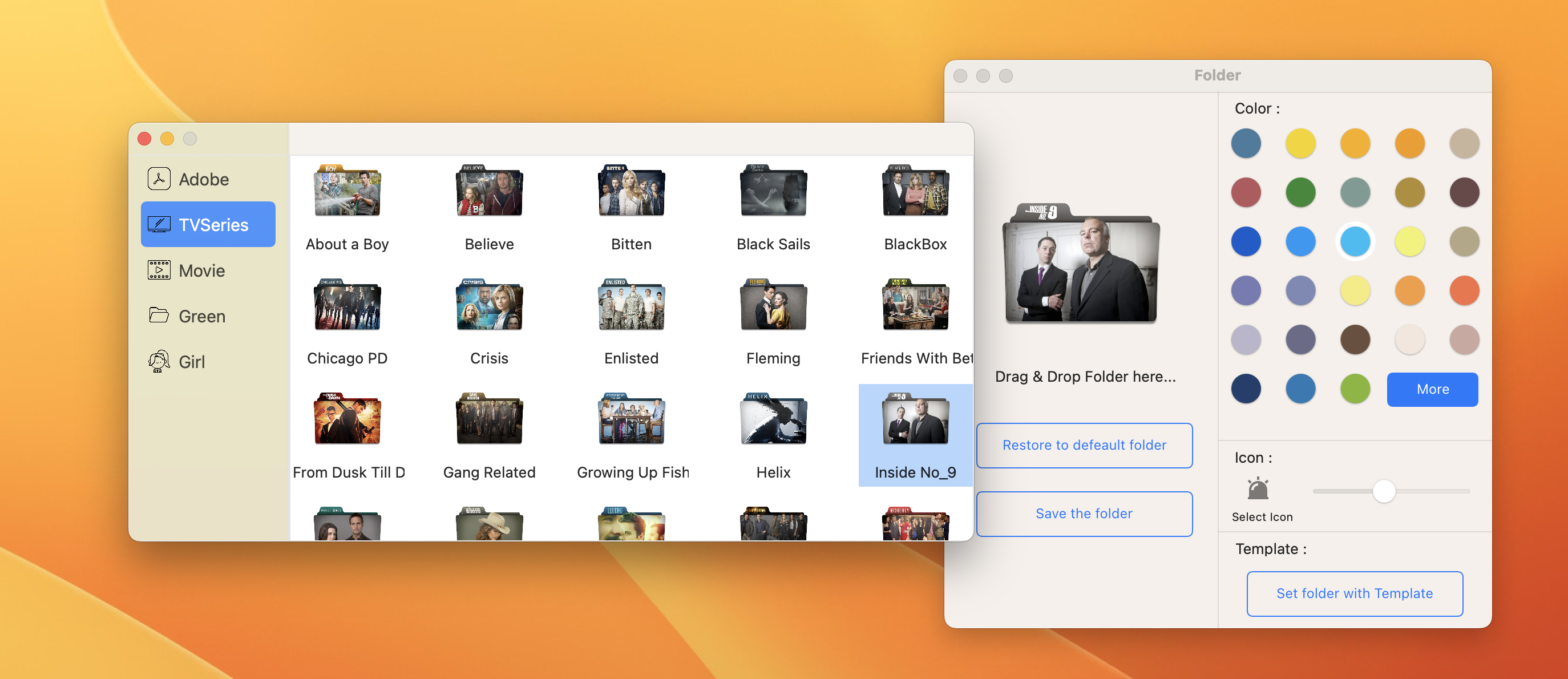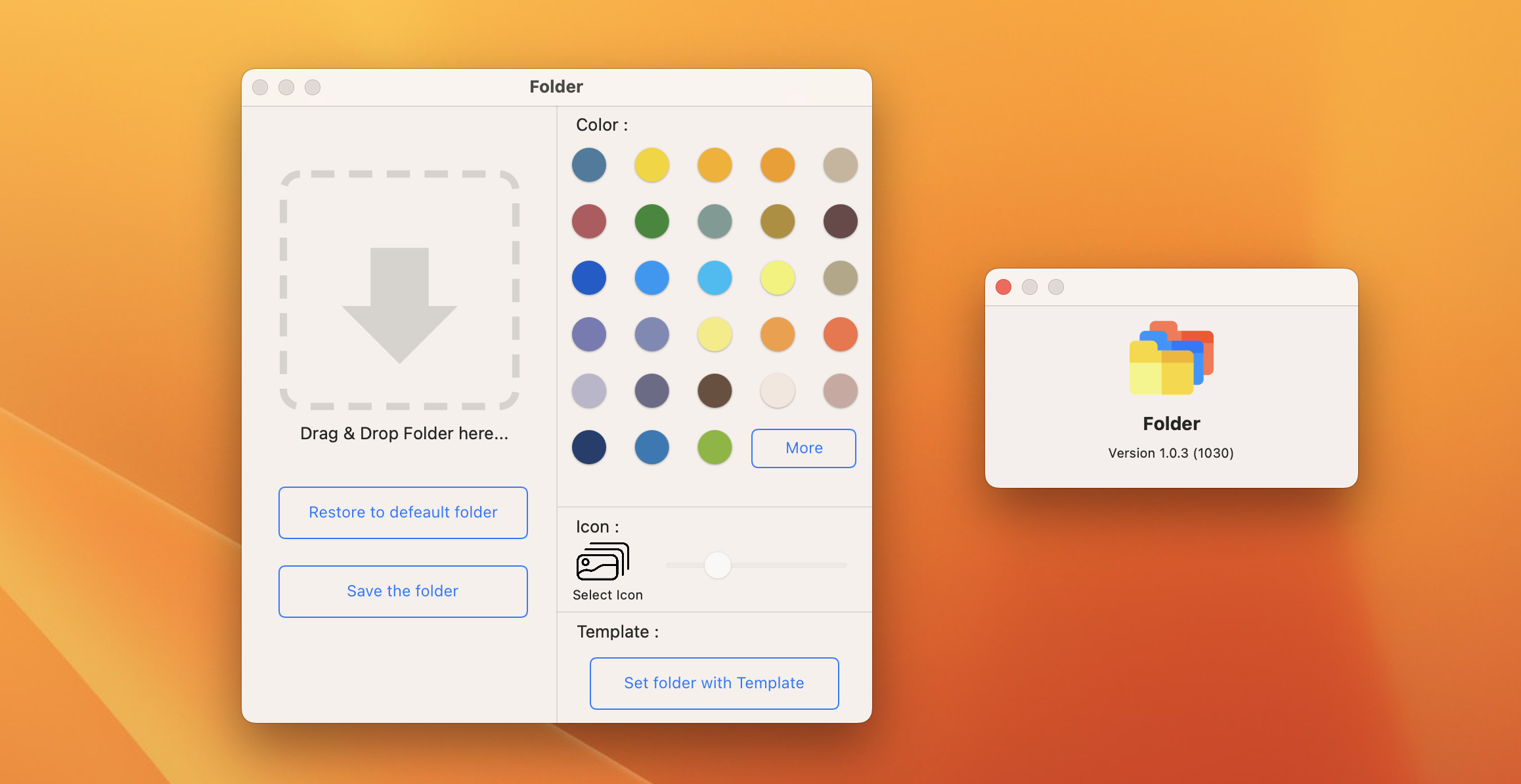 Folder for Mac是一款文件夹图标修改工具,可以帮助你更改文件夹图标,还可以随时更改文件夹的整个颜色。