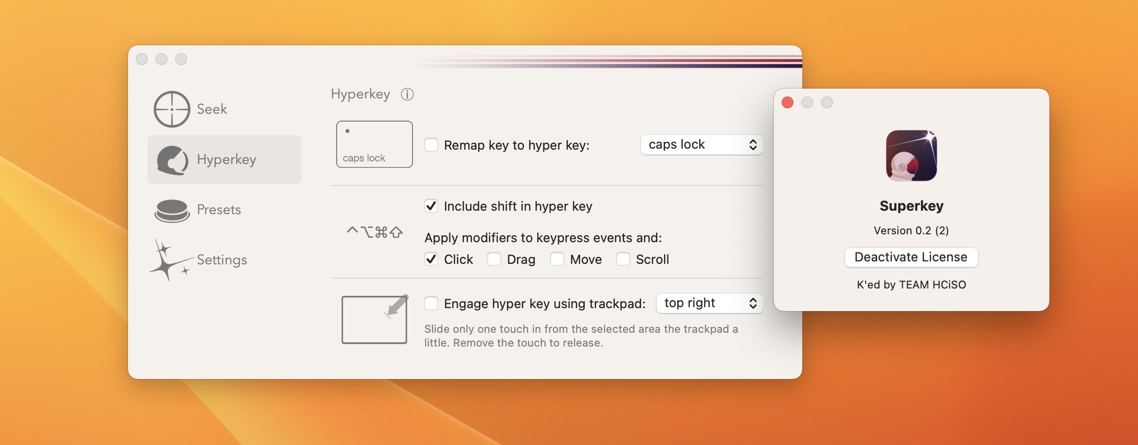 Superkey是Mac上一款键盘工具,能够在屏幕上的任意位置搜索和单击文本。带有内置的超级键和重新映射预设。
