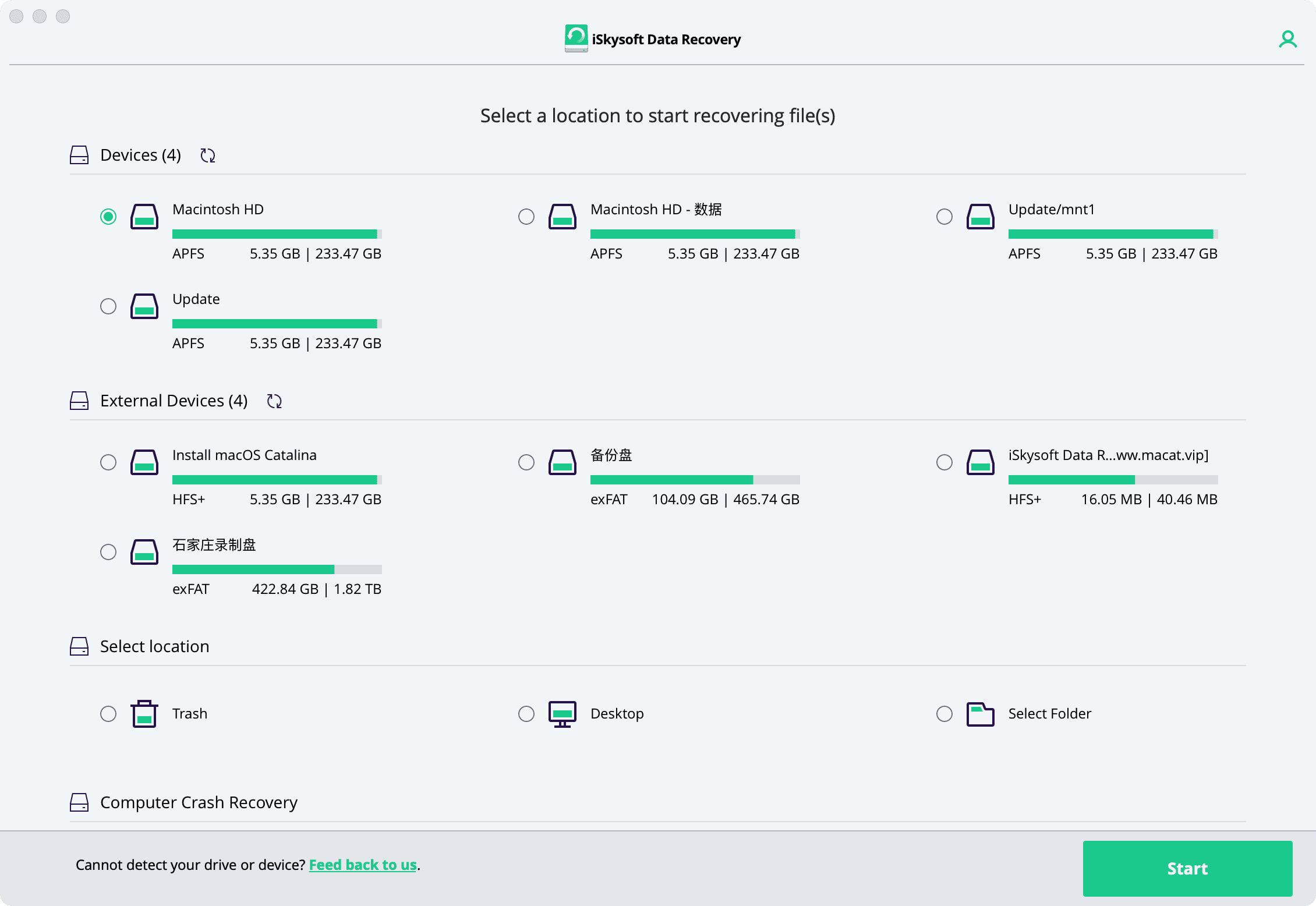 iSkysoft Data Recovery 是搜集到的一款强大的macOS数据恢复工具。支持恢复照片,视频,文档文件,音频数据和更多格式文件。通过误删除,磁盘/分区格式,硬盘驱动器损坏,macOS重新安装,硬件故障,丢失的分区,系统崩溃,操作错误导致的数据丢失可以使用iSkysoft Mac数据恢复轻松解决Mac OS发生的任何数据丢失问题。具体支持的恢复格式非常多,大家可以去官网了解一下。