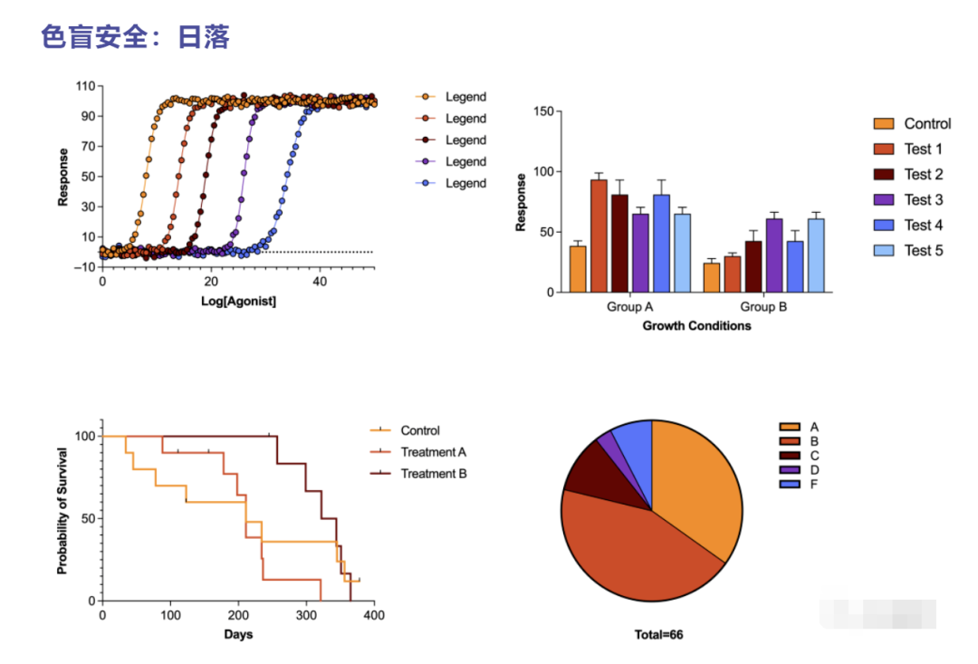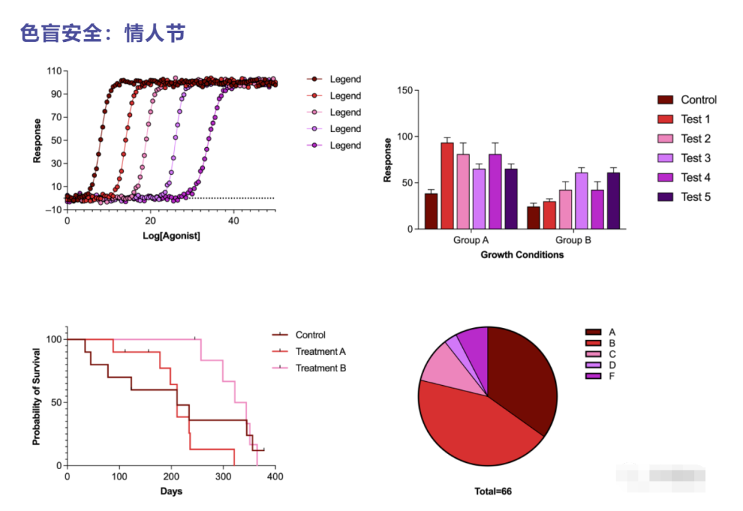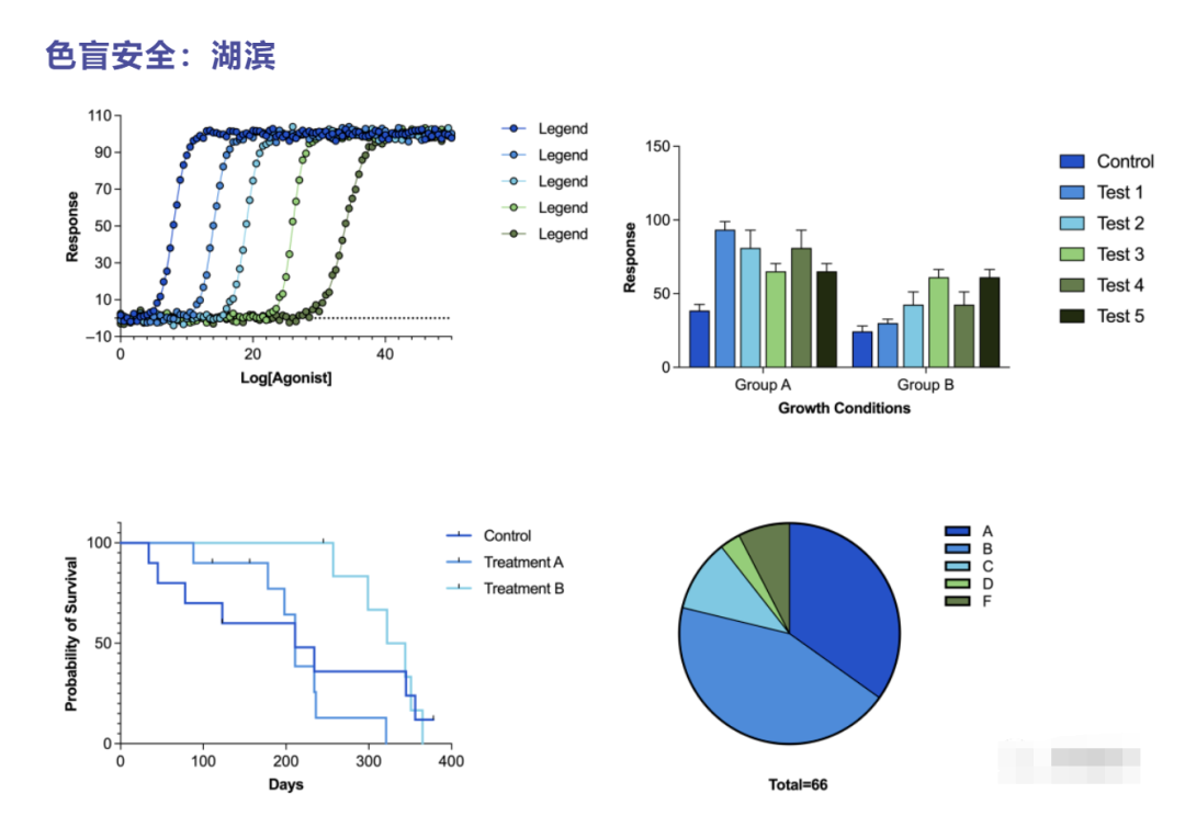 在Prism 9.5中,引入了另外三种“色盲安全”配色方案,可以实现相同的目标,同时在图形创建中提供了一些多样性。