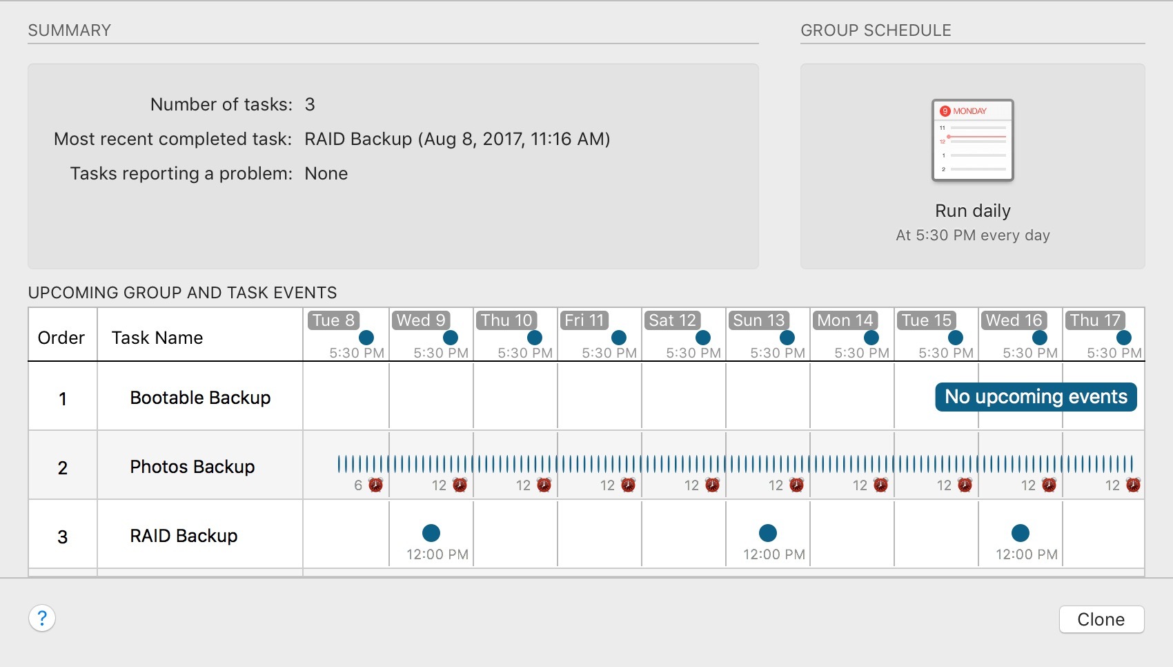 Carbon Copy Cloner 是一款全盘备份应用,与 OS X 系统自带的 Time Machine 不同,这款应用会将硬盘上的所有内容备份。如果想要更换硬盘,可以使用 Carbon Copy Cloner 将全盘备份,并直接拷至新硬盘上,省去了安装系统的麻烦。Carbon Copy Cloner 还支持备份选定的内容。