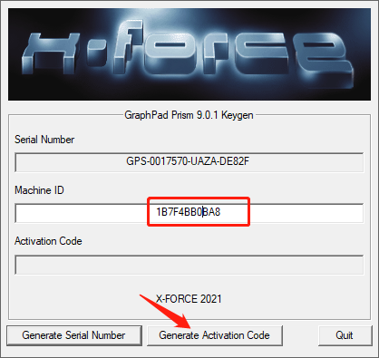 12.将软件上的Machine ID输入到注册机的Machine ID文本框内,然后点击注册机上的【Generate Activation Code】