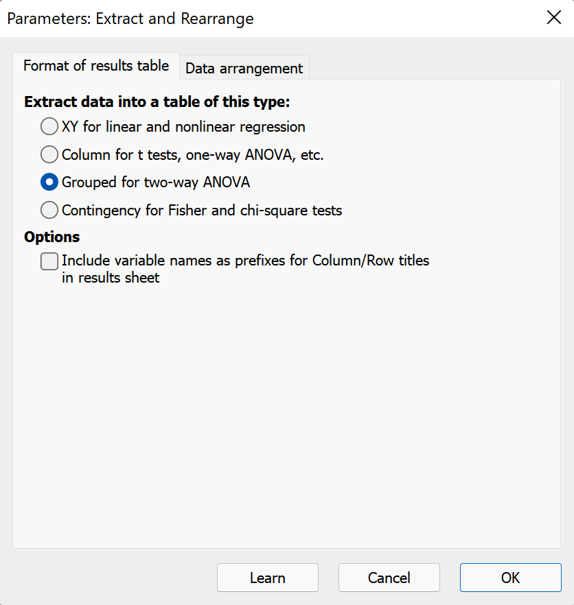 Prism 的多变量数据表采用非常标准的数据结构(每列作为变量,每行作为观察值),这意味着数据通常可以输入到这种表类型中,而无需在其他应用程序(如 Excel)中手动重新排列。一旦数据位于多变量数据表【Multiple Variables】中,就可以使用提取和重新排列分析将数据重新构建为所需的表格式,而无需复制和粘贴可能导致潜在错误的数据。