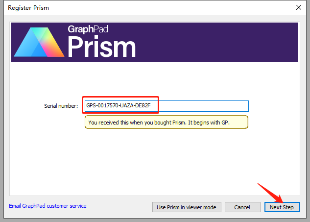 11.将上一步复制的机器码,粘贴到第11步弹出的窗口中的 Serial number文本框内,然后点击【Next Step】