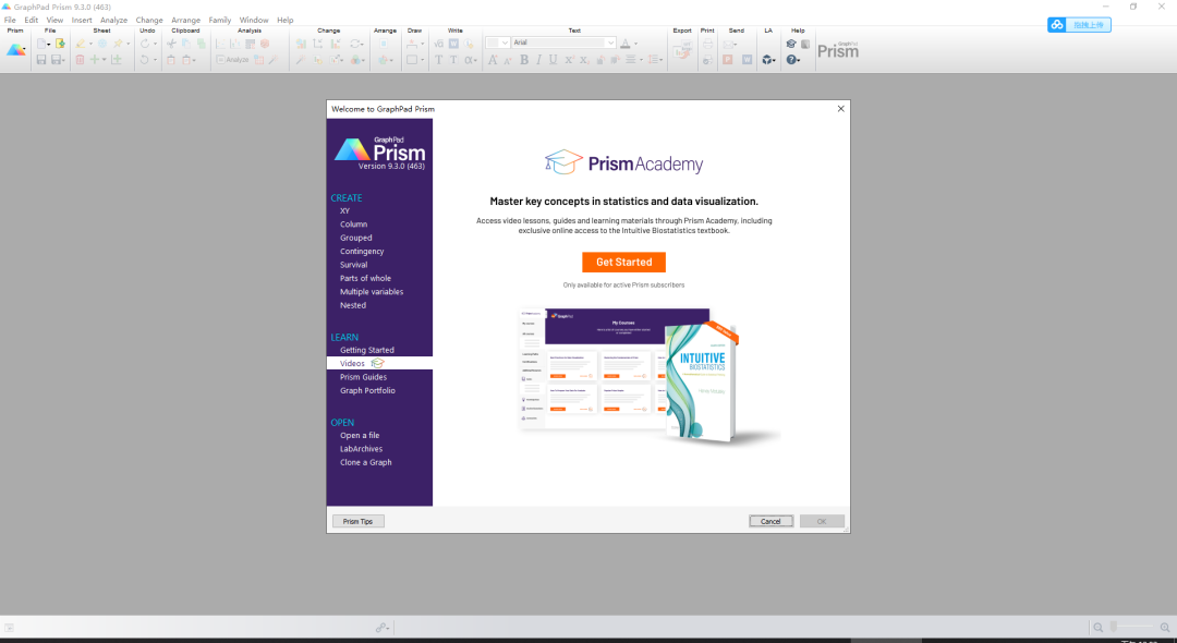 在Prism 9.3.0中,GraphPad更新了欢迎对话框,为任何级别的用户提供了广泛的信息和教育资源,不伦是第一次使用Prism的用户还是Prism的高级用户,都可以更加快速的开始做图,或者开始学习如何使用Prism。