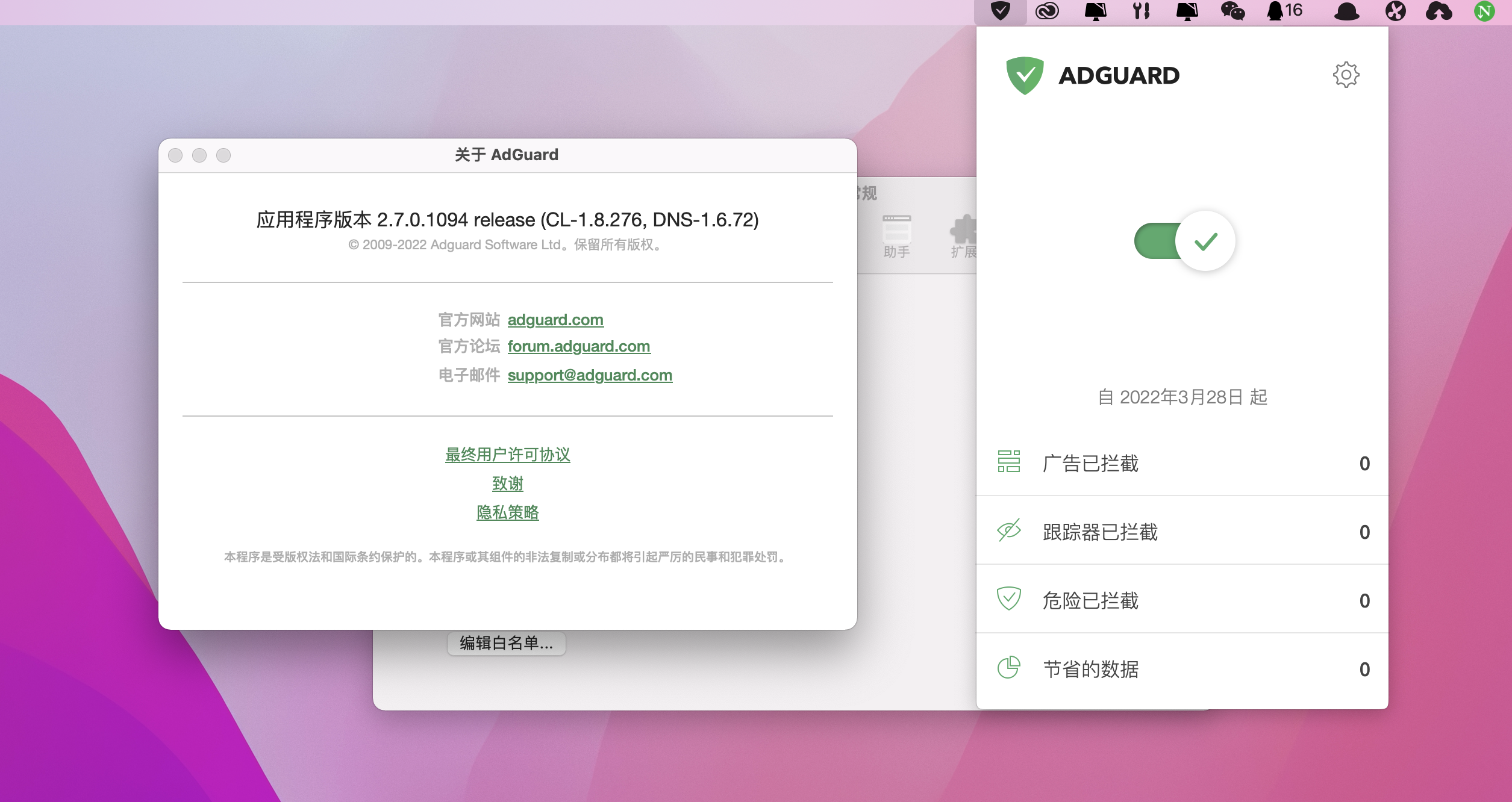 AdGuard for Mac 版是一款屏蔽广告,禁止在线跟踪,保护您远离恶意软件的广告过滤软件。AdGuard 不仅可拦截 Safari、Chrome等浏览器内的广告,还可使您远离跟踪,钓鱼和诈骗。让您网络冲浪更快速,更安全,更安逸。