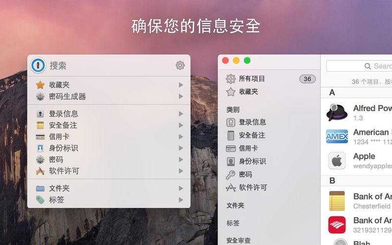 - 存储信用卡、安全笔记、护照信息、银行账户以及其他更多
