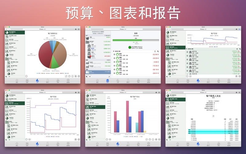 iFinance 4 分享了大量易于定制的图表和报告。根据您制定的规格,iFinance 会分析您的钱从哪来,又花在了哪些地方。使用预算功能找出您本月的余额或者您是否成功留下了足够的钱供月底消费。预算还可以为指定类别创建,例如服装、杂货或晚上看电影的每月预算。