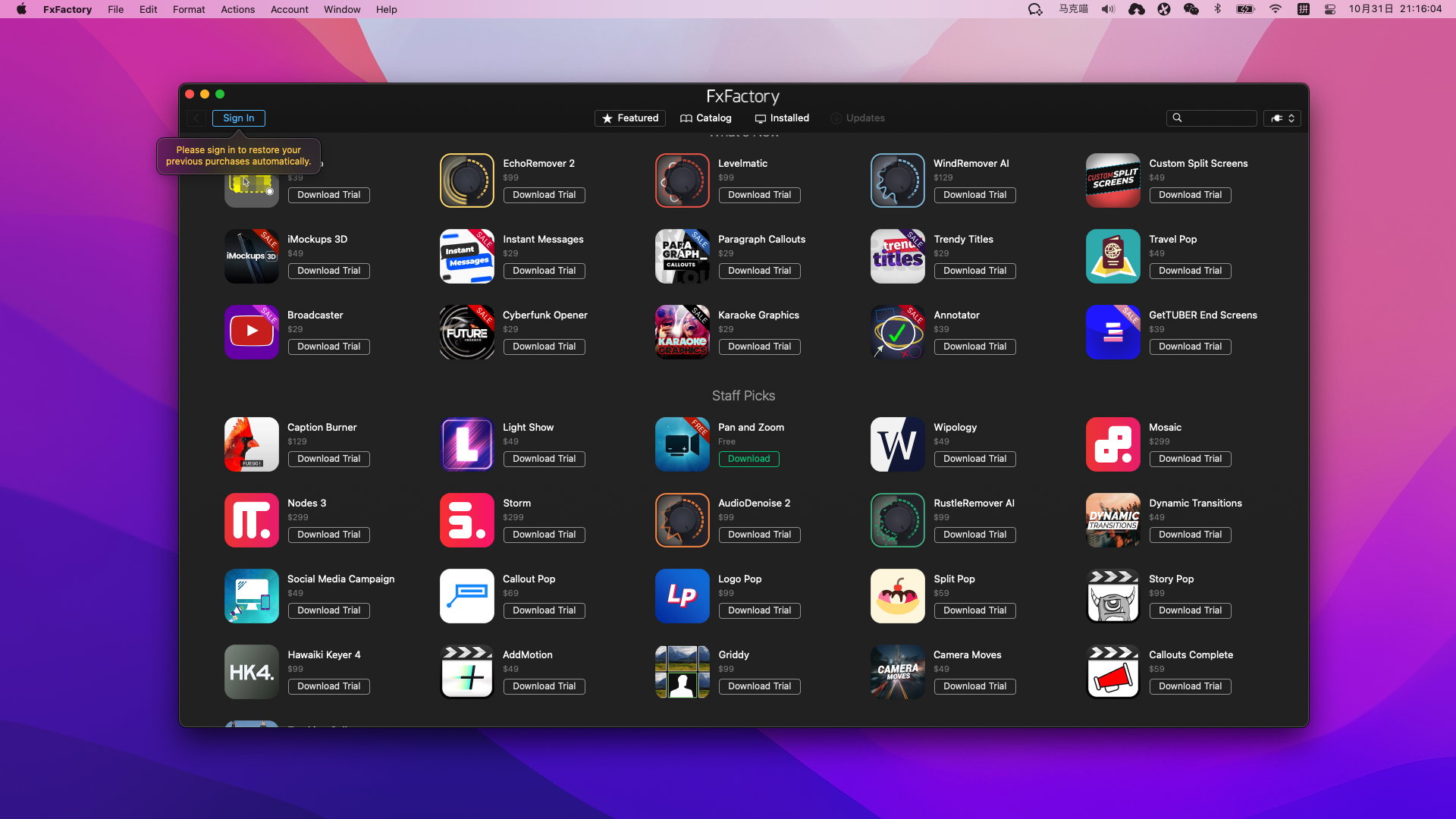2.打开fxfactory mac,点击一个您需要安装的插件,如Caption Converter,我们点击Download Trial