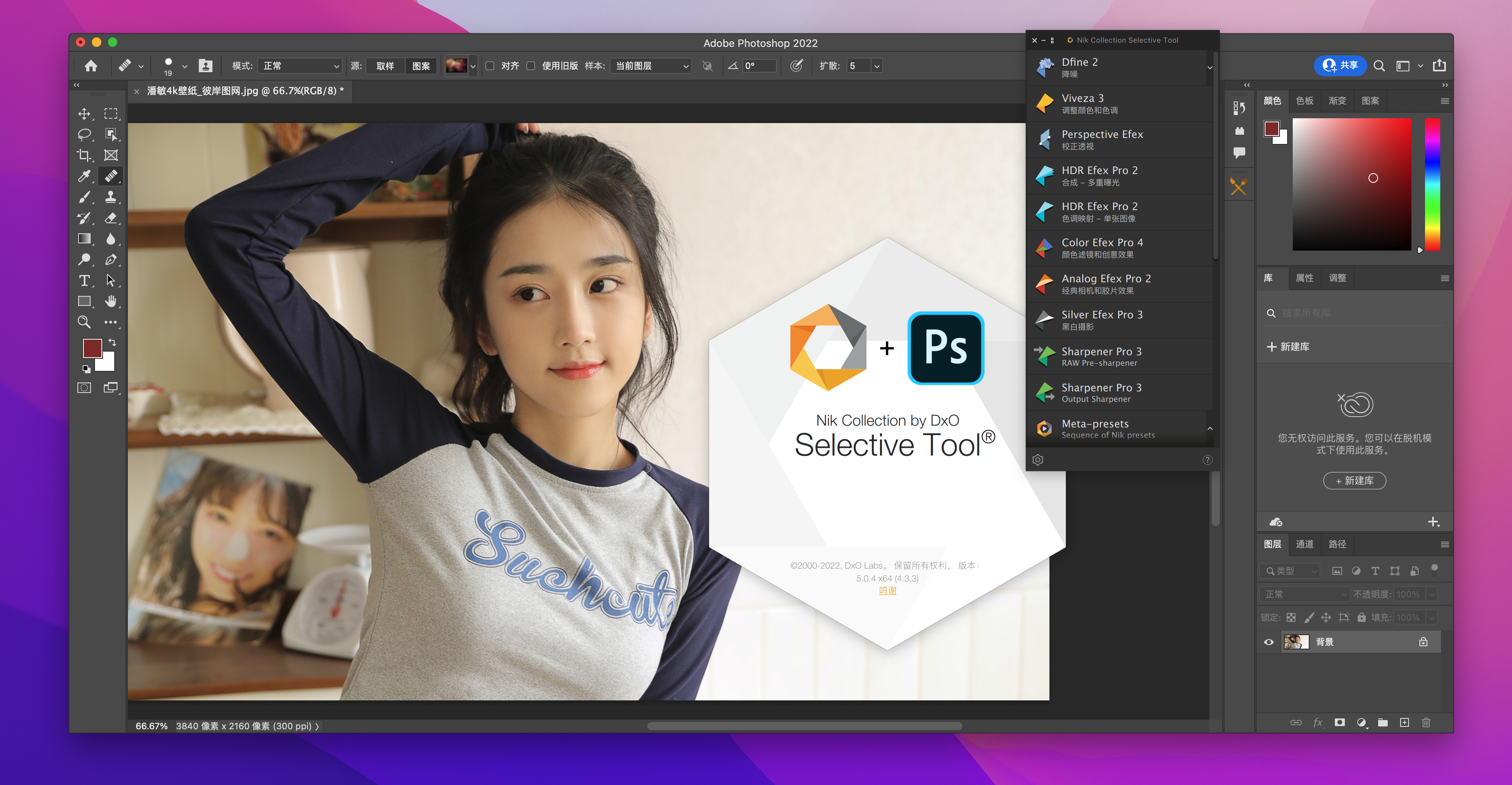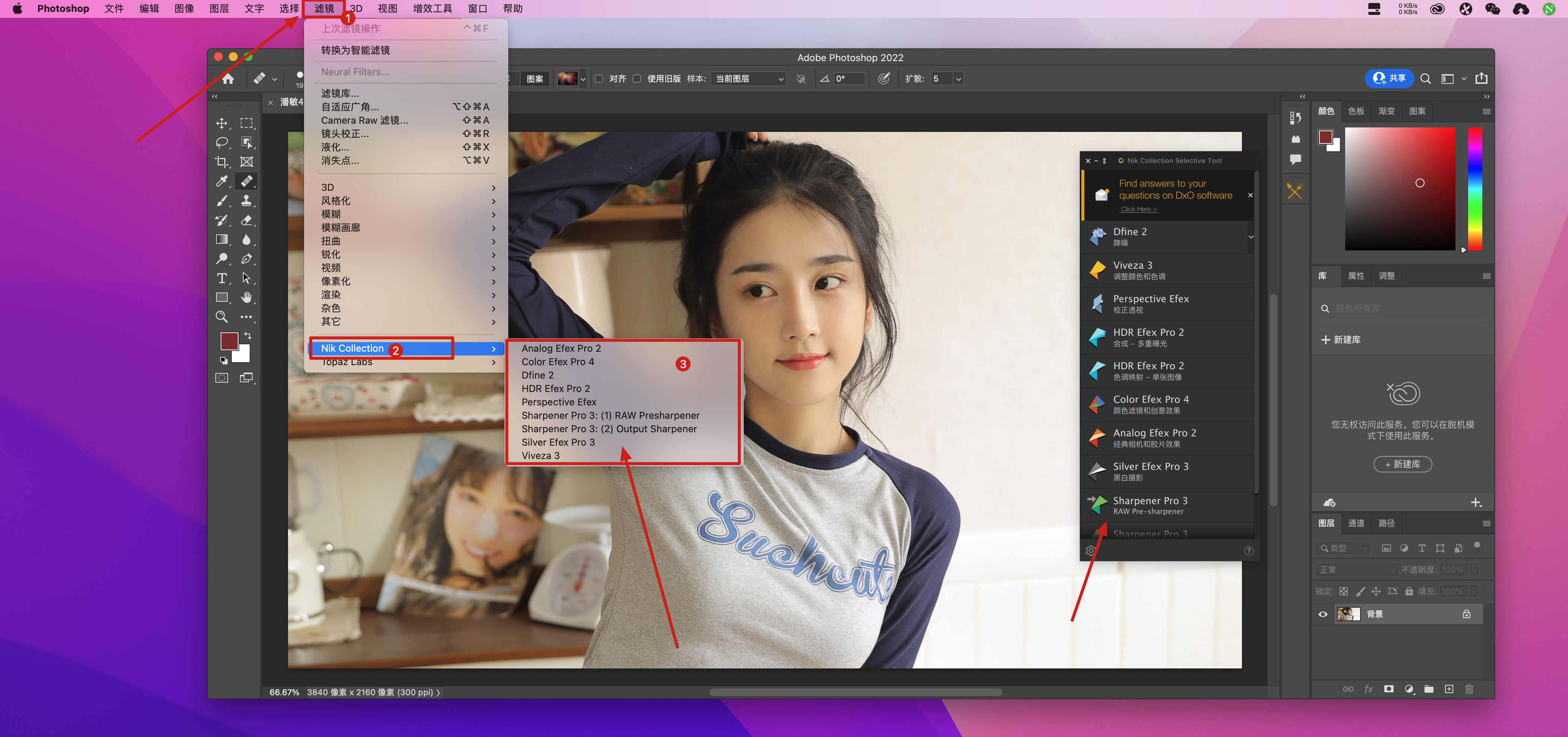 2.安装完成后,打开Photoshop 2022,在滤镜中即可找到安装好的Nik Collection 4 mac破解版