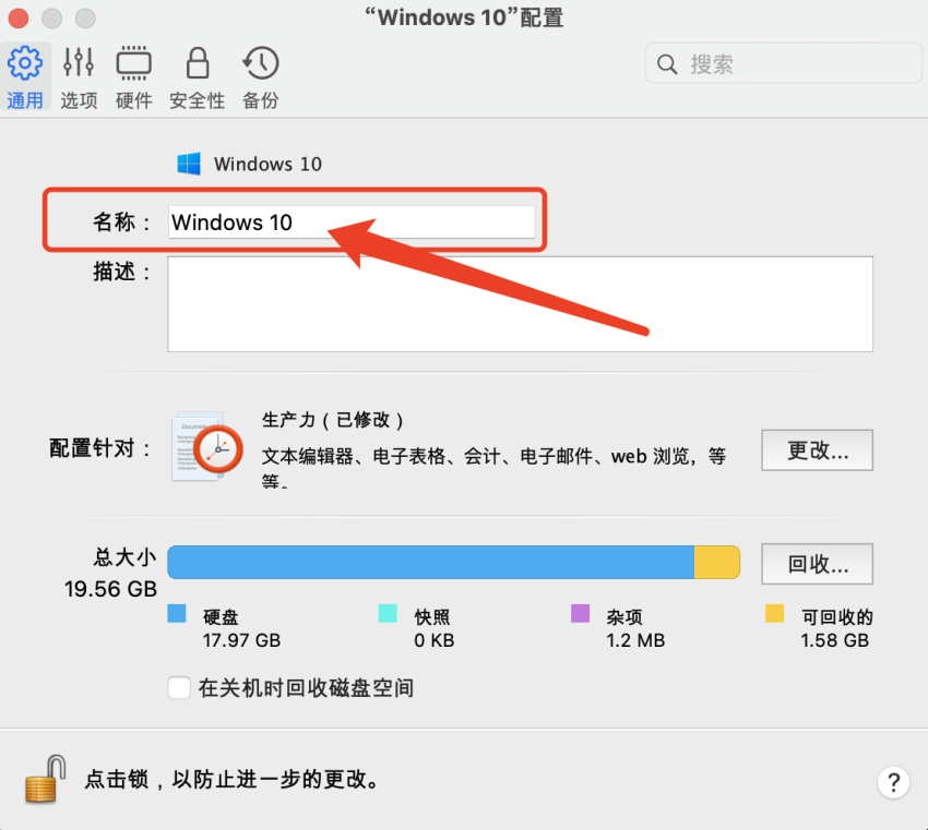 ②点击下方【⚙】设置,在【通用】里面修改名称为 “Windows 10”
