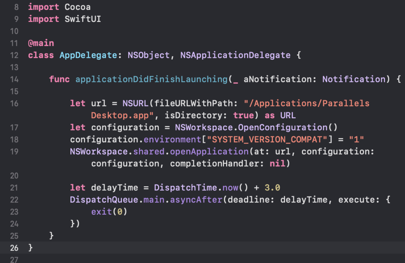2.打开「终端App」,输入以下命令打开Parallels Desktop