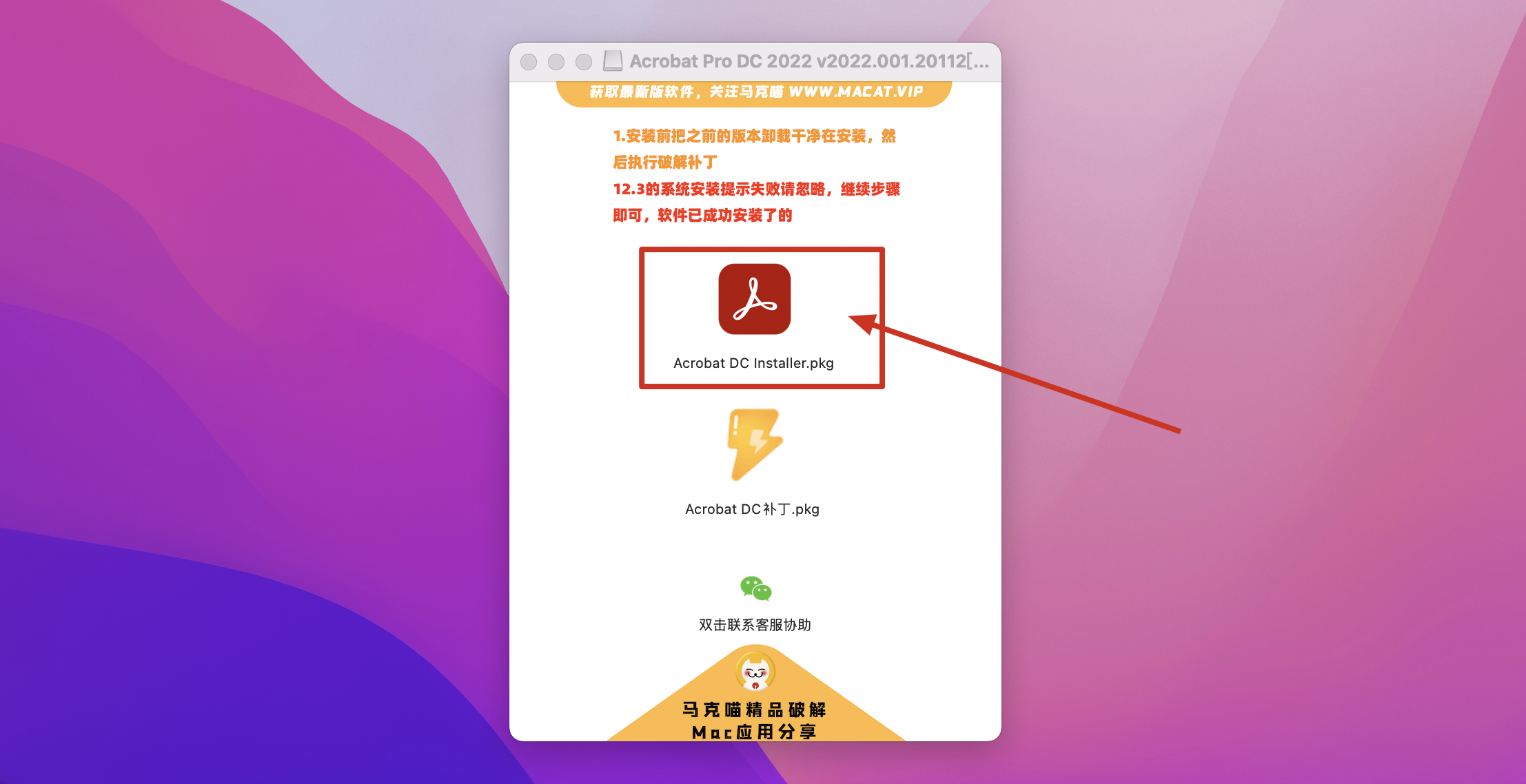 5.回到镜像包,双击一键破解工具.pkg根据提示进行安装即可破解成功