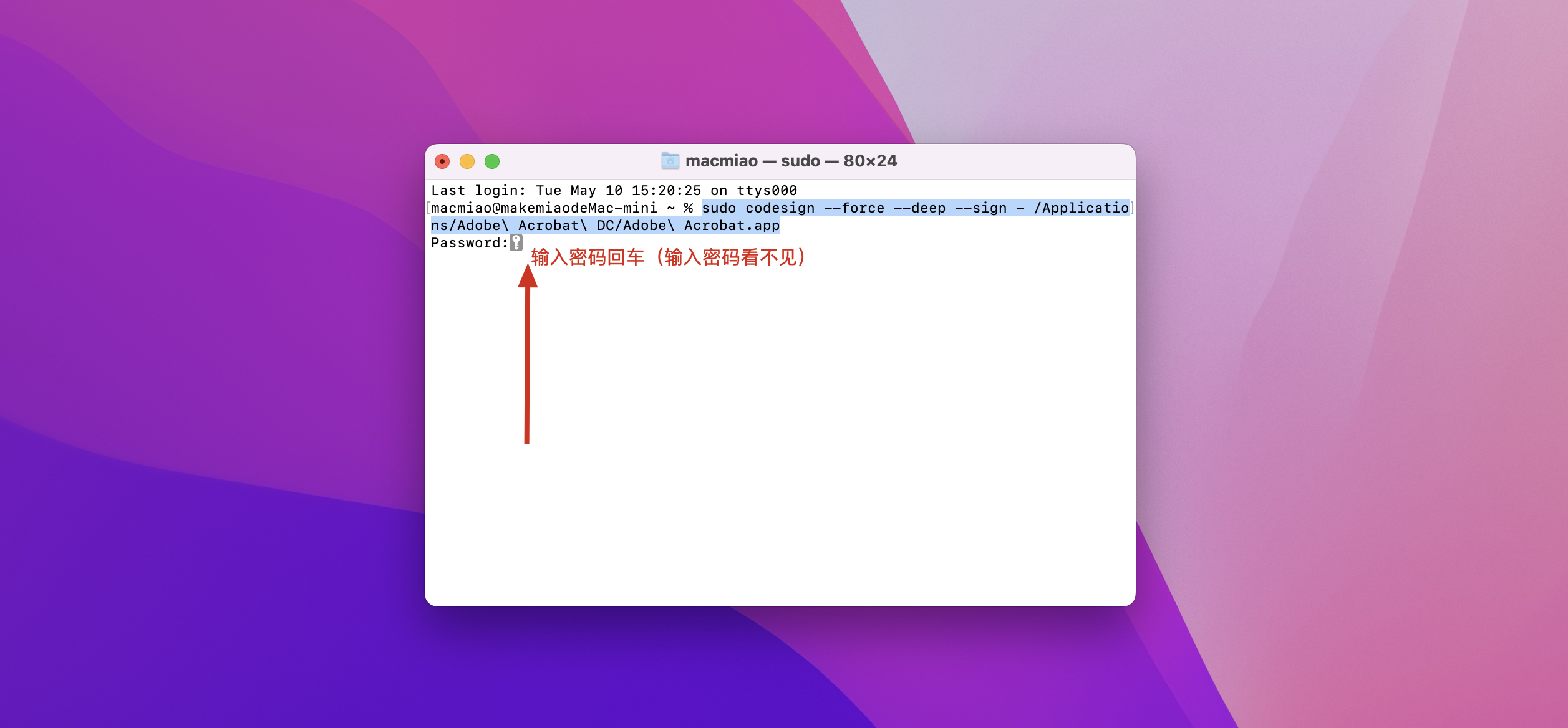 输入密码并回车。