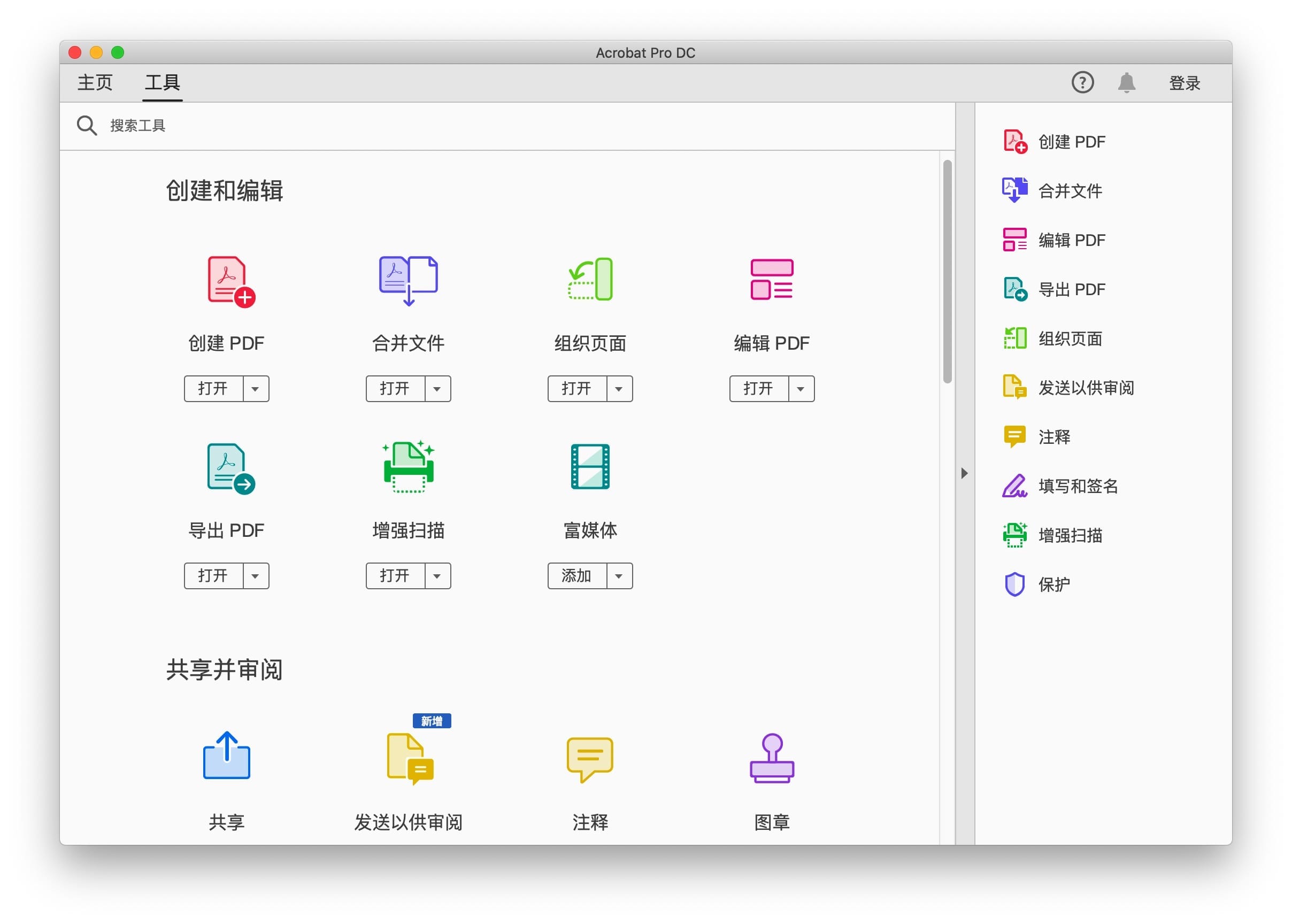 Adobe Acrobat Pro DC所倡导的移动办公,正是跨设备和应用程序的。Adobe Acrobat Pro DC的使用界面非常友好,在不同设备上,Adobe Acrobat Pro DC的界面始终保持一致。而它的UI设计也非常易于客户使用,文档归类和文件搜索做的非常人性化。Adobe Acrobat Pro DC主画面上可以直接看到使用者最近开启过的档案列表。工具选单内,都采用了图示化的功能选项,直接点选需要的功能就可以开始作业。