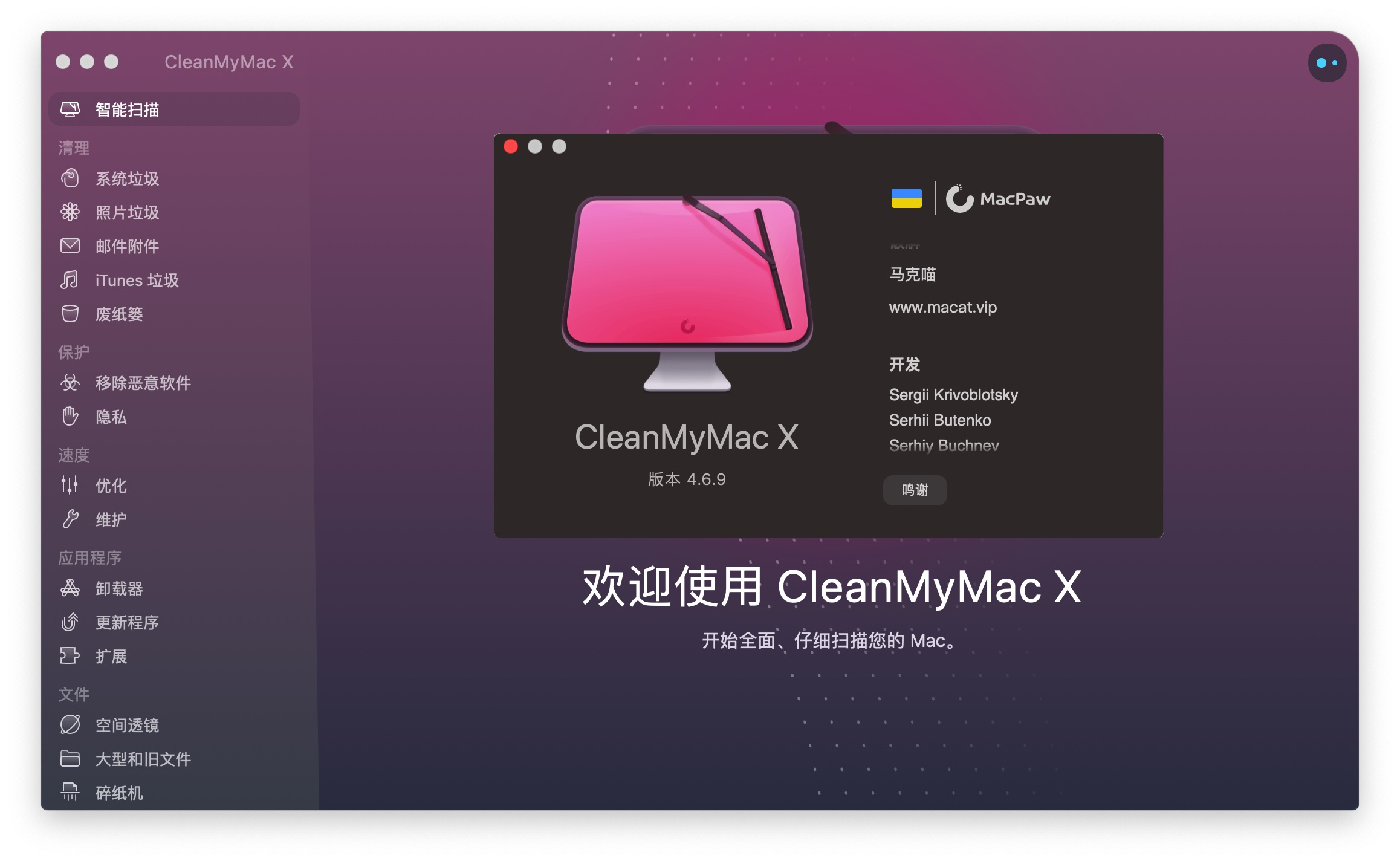 CleanMyMac X 4.6.14是搜集到的一个系统清理工具,删除系统缓存文件 , 多余的应用程序语言包 , PowerPc软件运行库等。 是个给你的硬盘瘦身的好工具。新版本采用全新的UI设计,支持macOS 10.15。