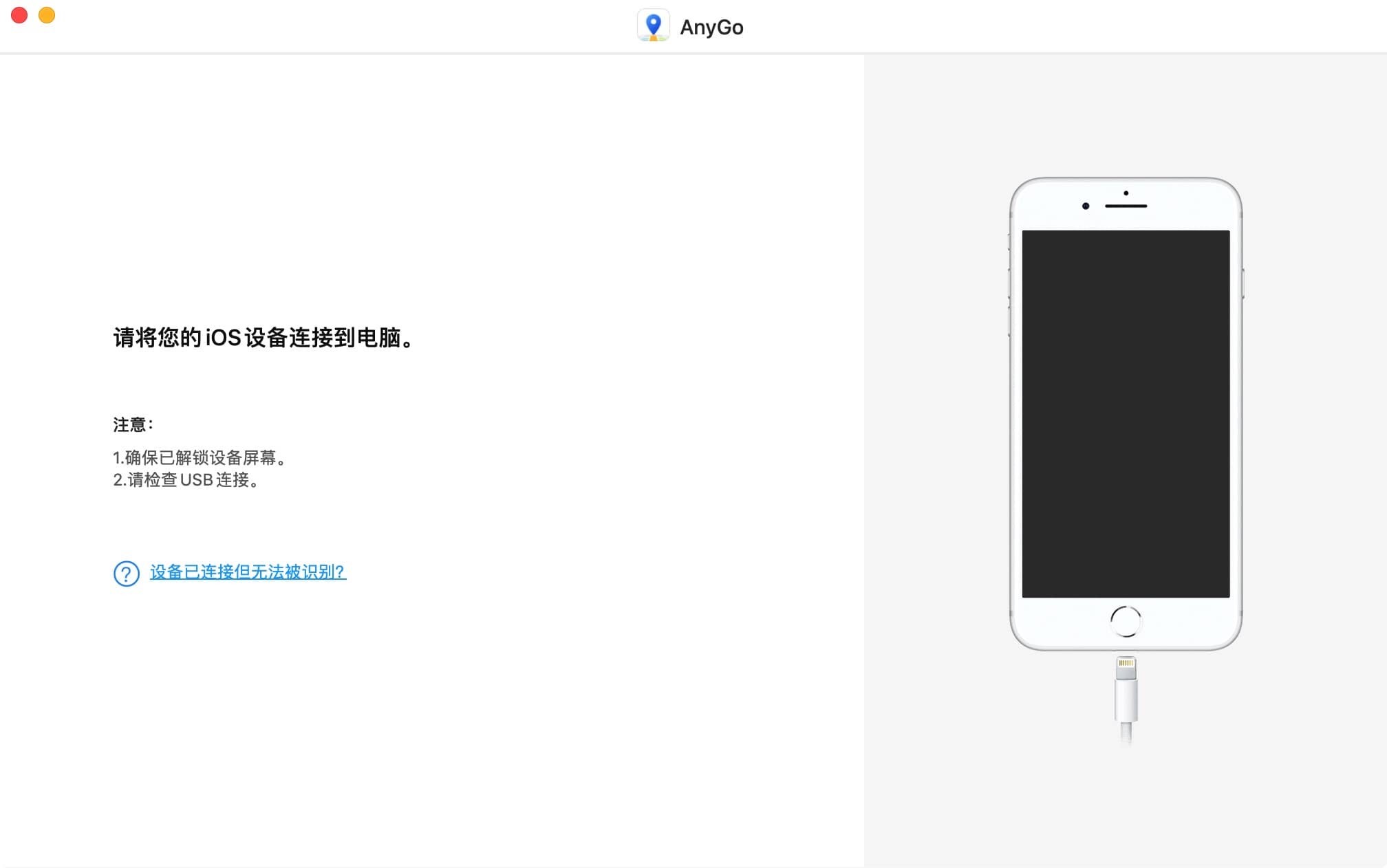 AnyGo 使用很简单,使用数据线将iphone / ipad连接至mac电脑,并保持屏幕亮,不能锁屏。