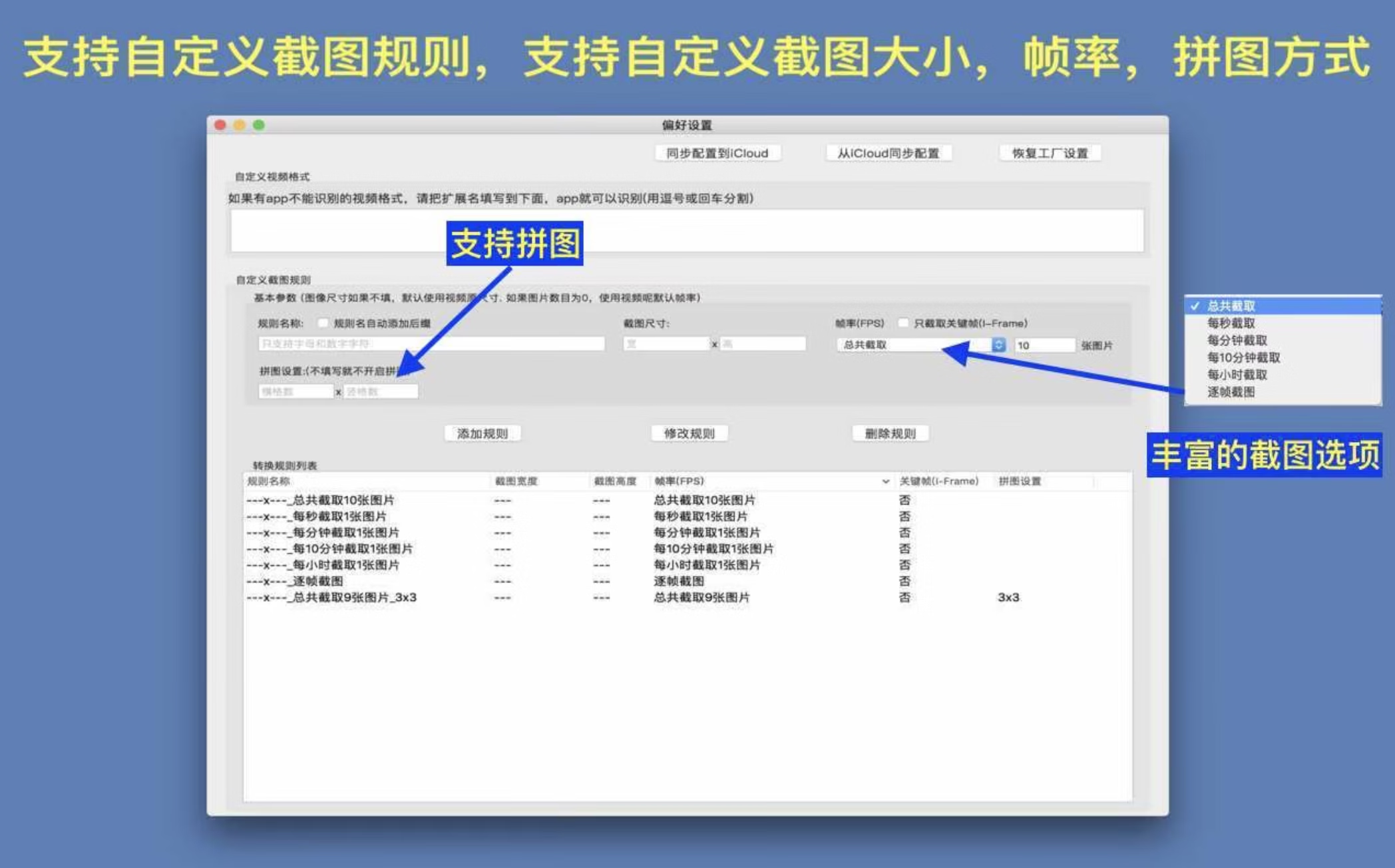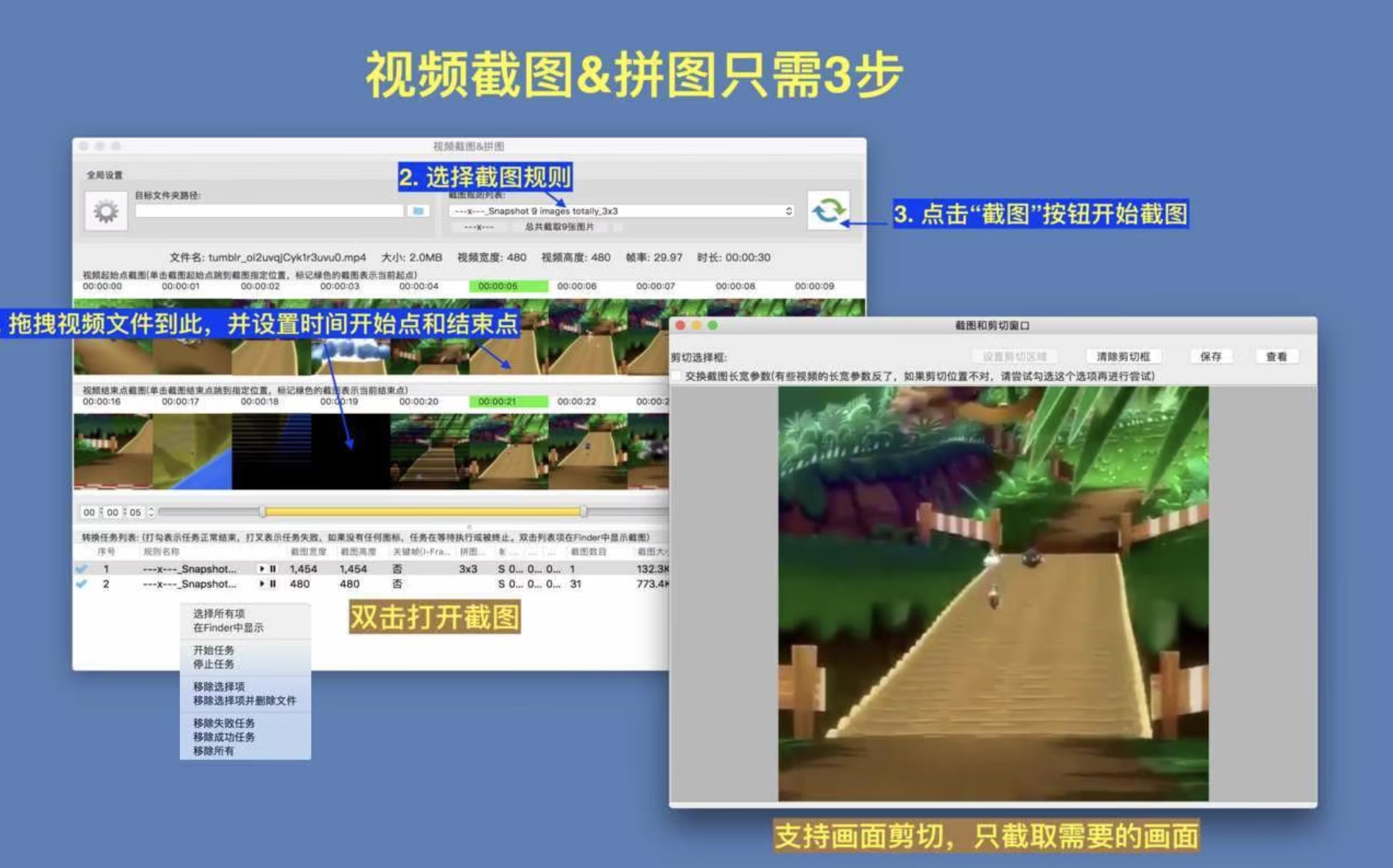 非常简单易用而且高质量的视频截图&拼接软件!支持逐帧截图,支持指定时间间隔截图等等,不错过任何视频中最精彩的画面!